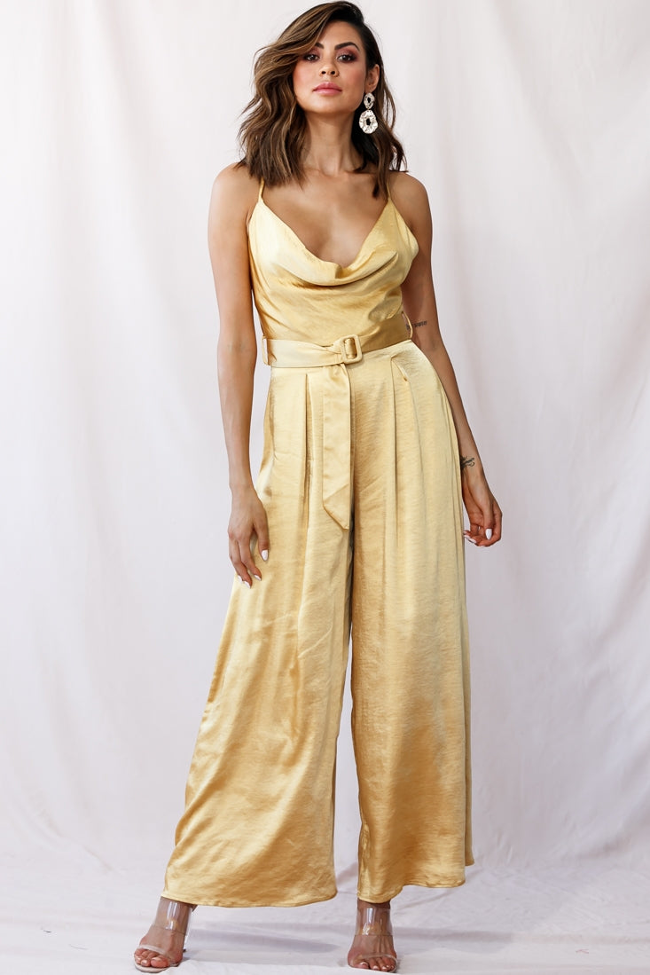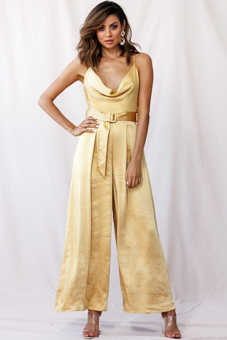 Mali Wide Leg Belted Jumpsuit Mustard