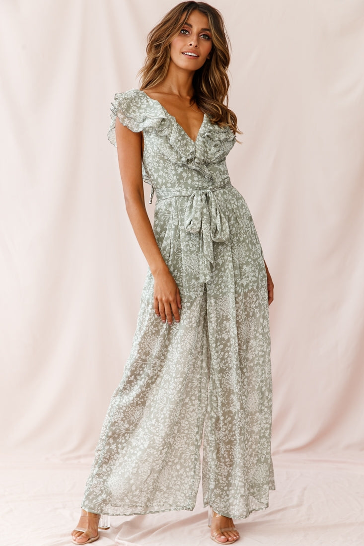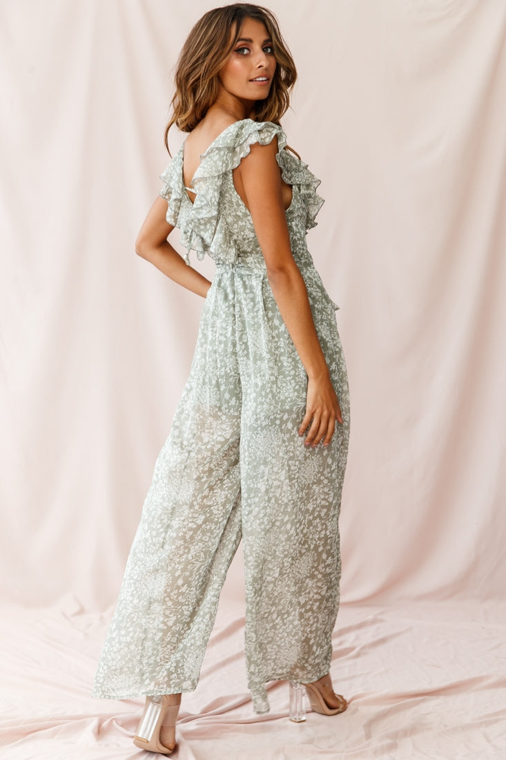 Marcia Ruffle Strap Wide Leg Jumpsuit Olive