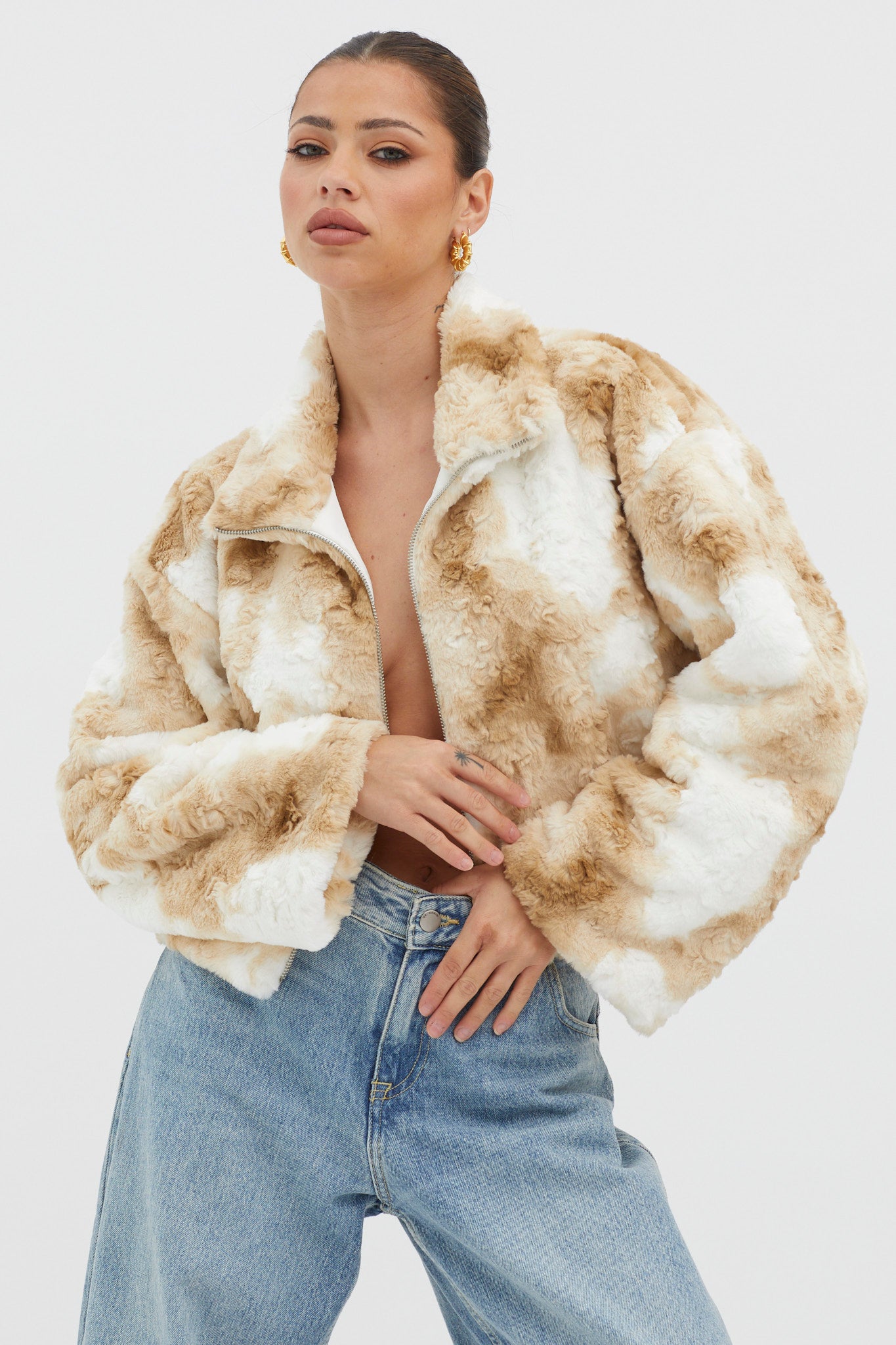 Complete your look with our on-trend Margeaux jacket. It features a super soft, faux fur fabric and zipper closure in the front and is perfect for a girls' night out teamed with mom jeans and a vintage tee for a super hot look.