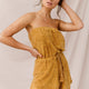 Casual meets cool in this sporty romper. Featuring a strapless style bust with elastic top and a drawstring waist to allow for a perfect fit. This super soft terry cloth fabric romper is perfect to wear lounging by the pool on your next vacay or wear it to run errands in style and comfort. Pair it with sneakers or sandals for an on-trend athleisure look.