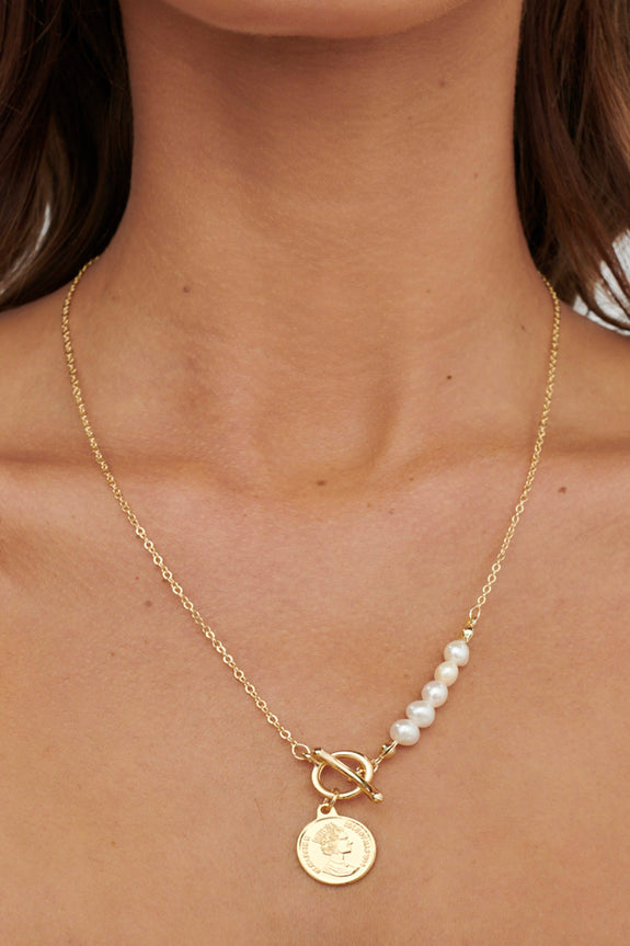 Get ready to hear, "I love your necklace!" a whole lot! We are totally in love with our Marissa necklace. Featuring pearl accents and gold chain with coin pendant. It's giving It Girl and we are obsessed! Team it with a crochet dress or our Jamaica set for a look we are loving.