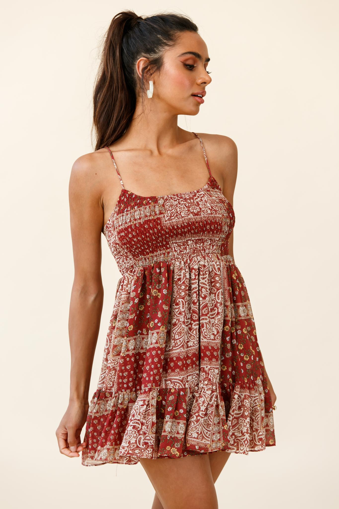 Channel your inner boho babe in our pretty Marja dress. Featuring a sweet baby doll style and shirred bust. We are loving the gorgeous paisley print. Perfect for a coffee date with your girls teamed with mules or throw it on over your bikini and hit the beach in style.