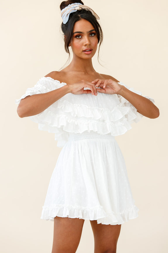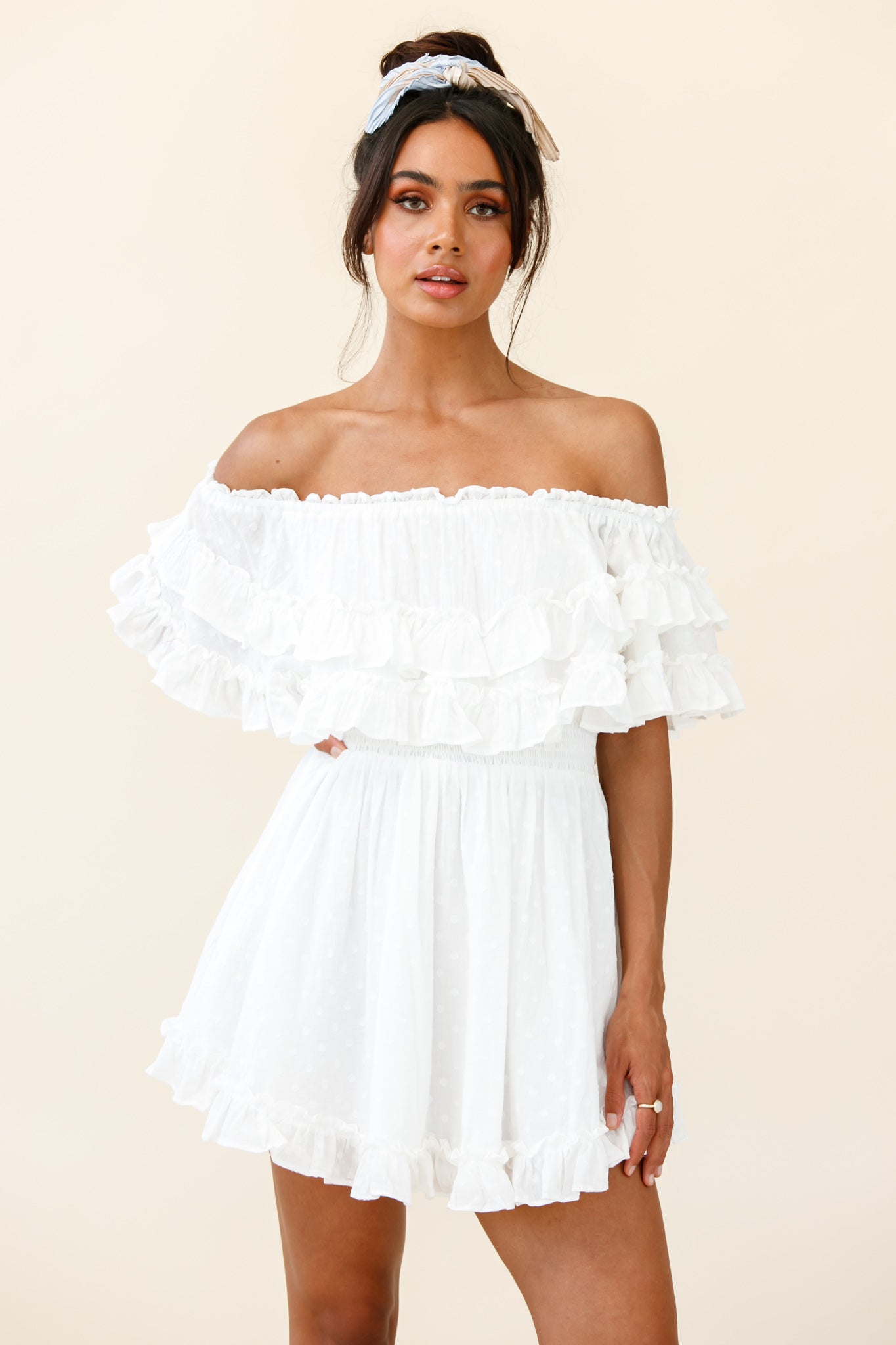 You'll look as pretty as a picture in our Meet Me At Sunset dress. We are obsessed with those girly frill details and on-trend bardot neckline that can also be worn on the shoulders. Perfect for flirty happy hours by the beach teamed with canvas wedges and a mojito.