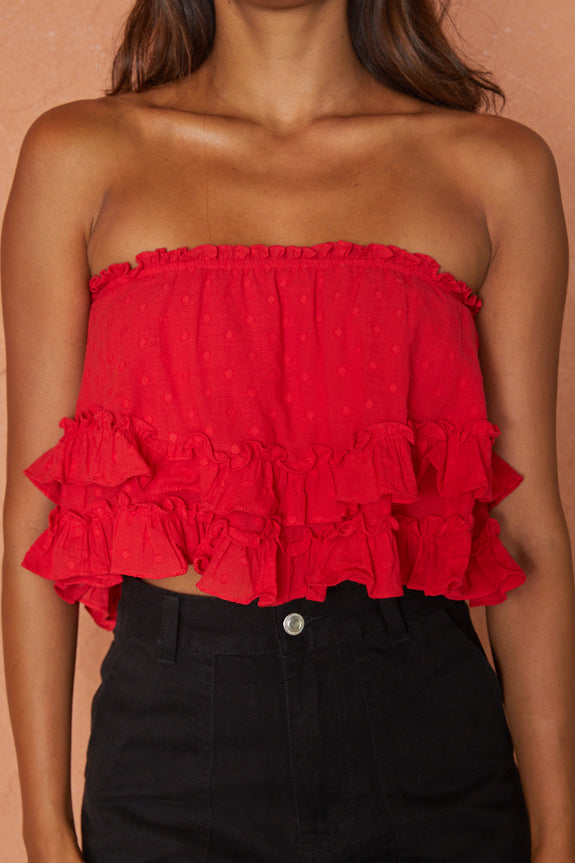 You'll look as pretty as a picture in our Meet Me At Sunset top. We are obsessed with those girly frill details and breezy strapless style. Perfect for flirty happy hours by the beach teamed with canvas wedges and a mojito.