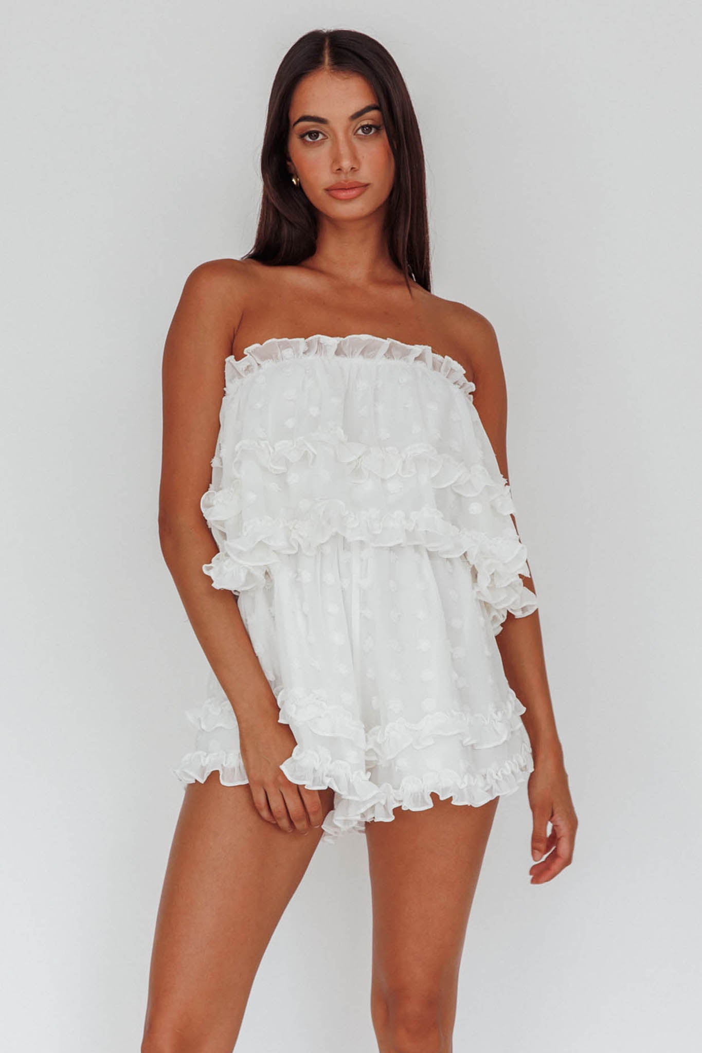 Make an entrance in our gorgeous Memories romper. We are obsessed with the textured chiffon and frill details. Perfect for a bachelorette party or special occasion. Team it with statement heels and a clutch for a look that won't be forgotten too easy.