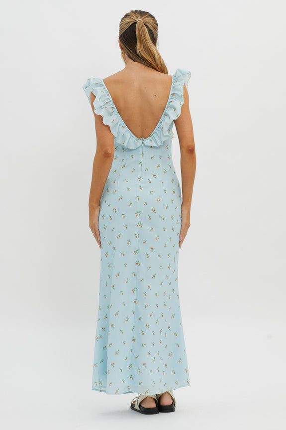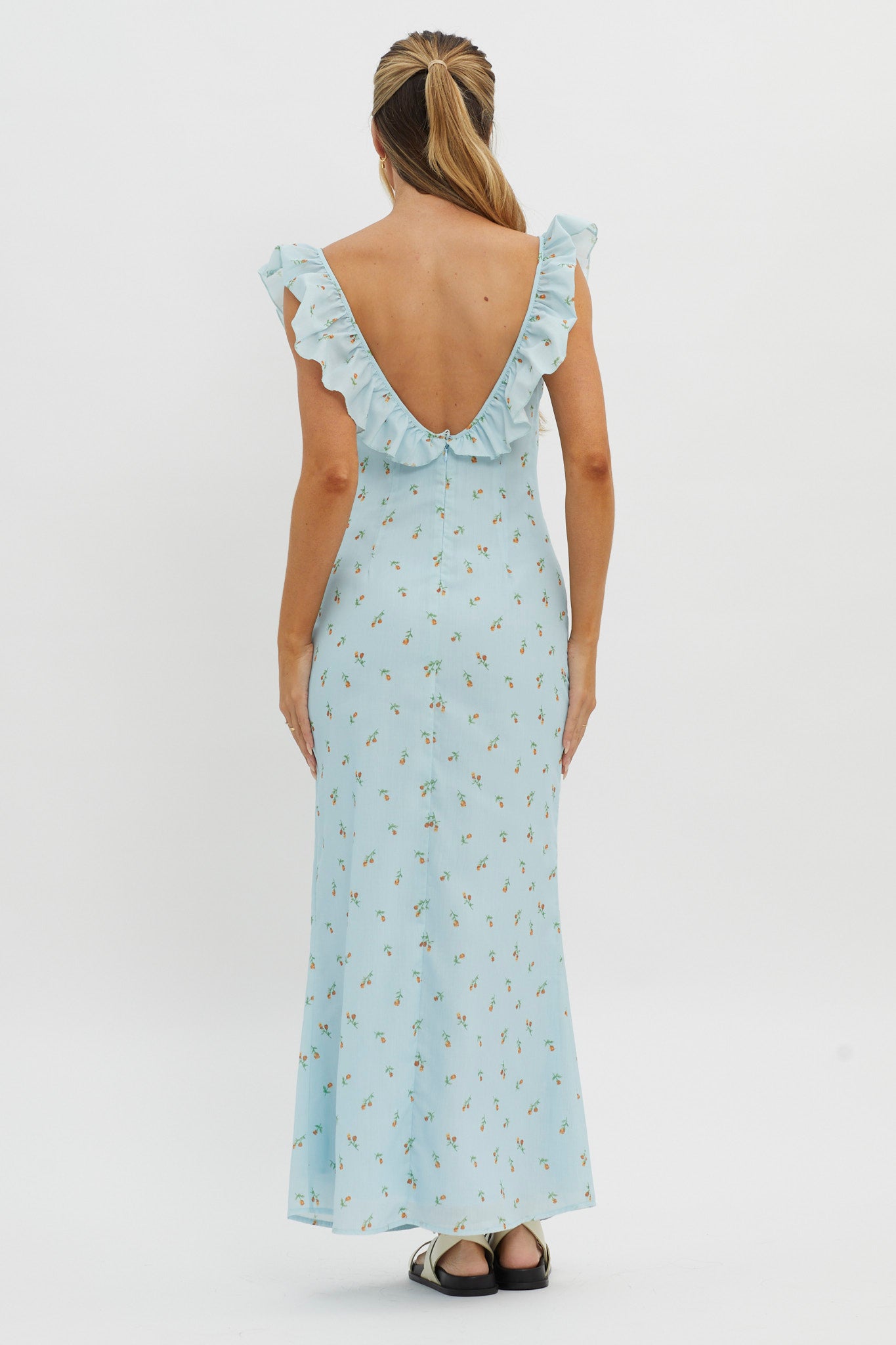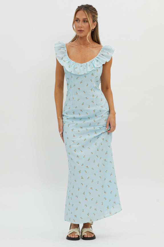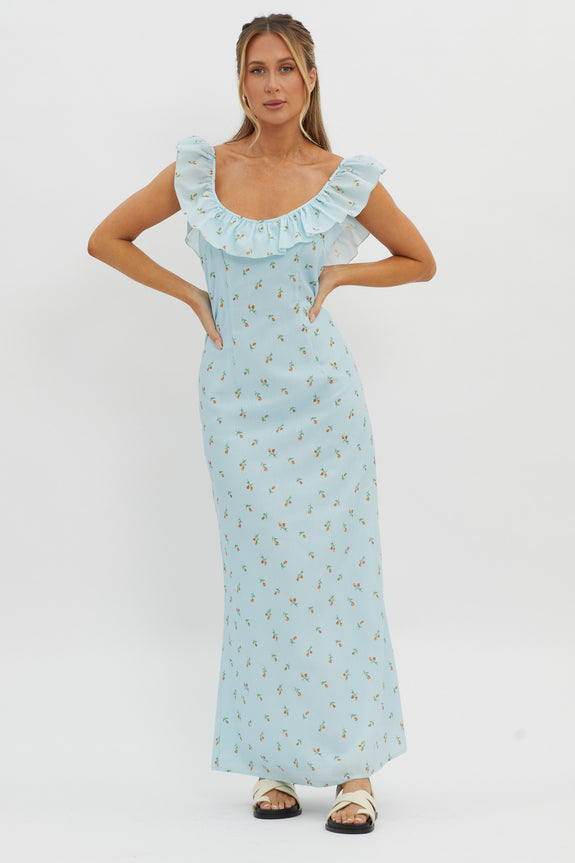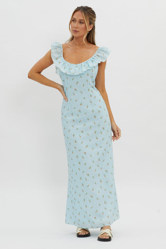 Merci Beaucoup Frill Neckline Maxi Dress Blue