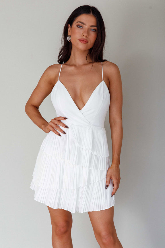Mercy Surplice Neckline Accordion Pleat Dress White