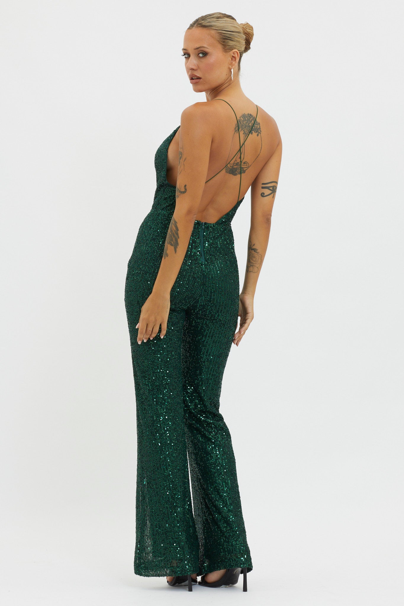 Light up the night in our gorgeous Midnight Kiss jumpsuit. Featuring sequins throughout and a criss-cross back. It's perfect for a glam New Year's Eve party or special birthday celebration. Team it with strappy, silver heels and a clutch for a showstopping look.