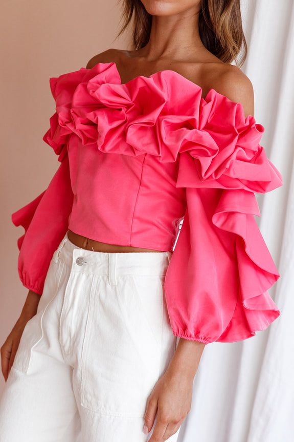 Midnight Mirage Puff Ruffle Crop Top Doll Pink