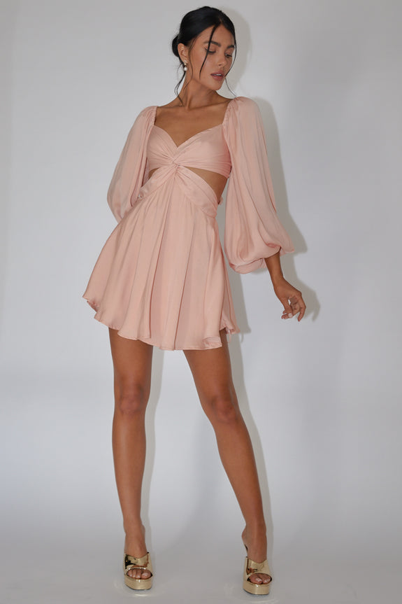 Miraya Balloon Sleeve Twist Mini Dress Peach
