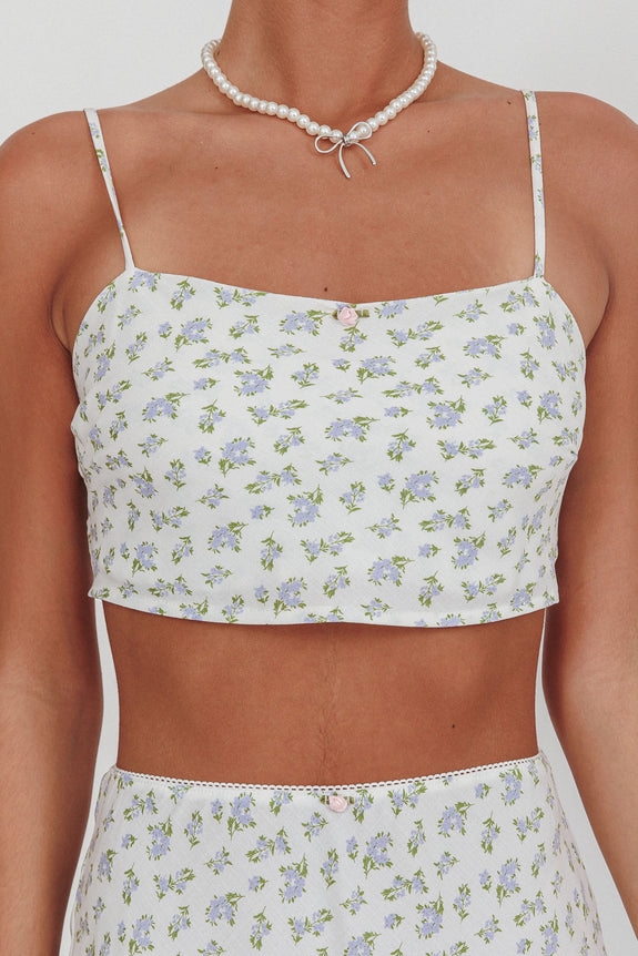 Miss Cupid Cami Crop Top Floral Ivory/Blue