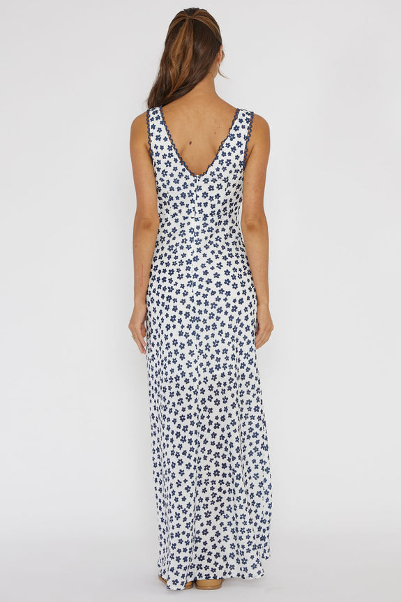 Miss Divine V-Neck Maxi Dress Flower Blue
