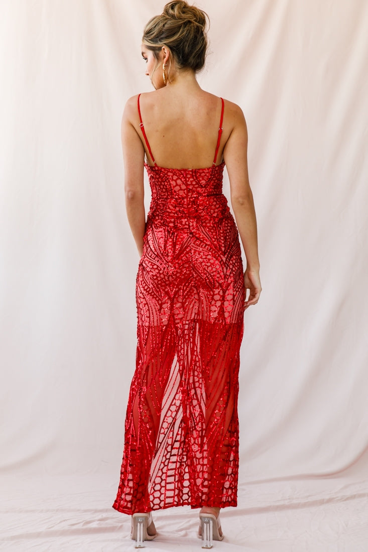 Jaws will drop the moment you walk into a room wearing this dress. Featuring the prettiest sequin covered overlay, plunging neckline with padded bust cups, adjustable cami straps and sexy thigh-high split. The Miya is the perfect dress for the girl who likes to steal the show. Pair it with nude heels and a clutch and get ready to turn heads.