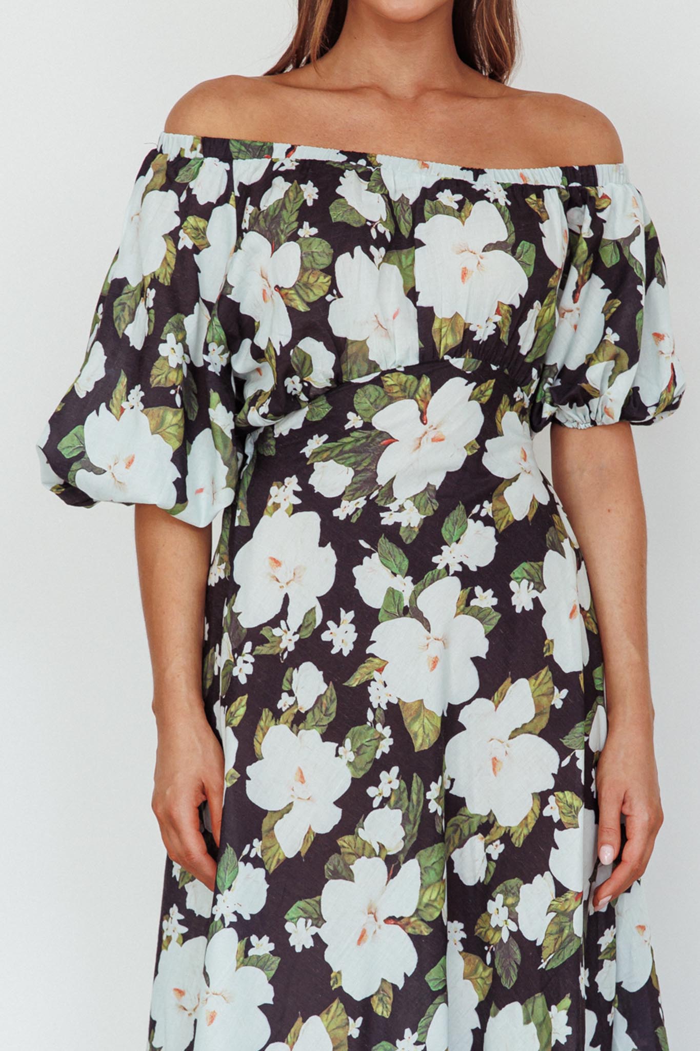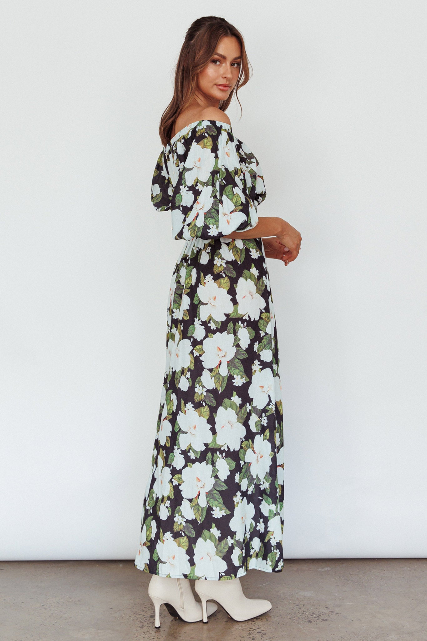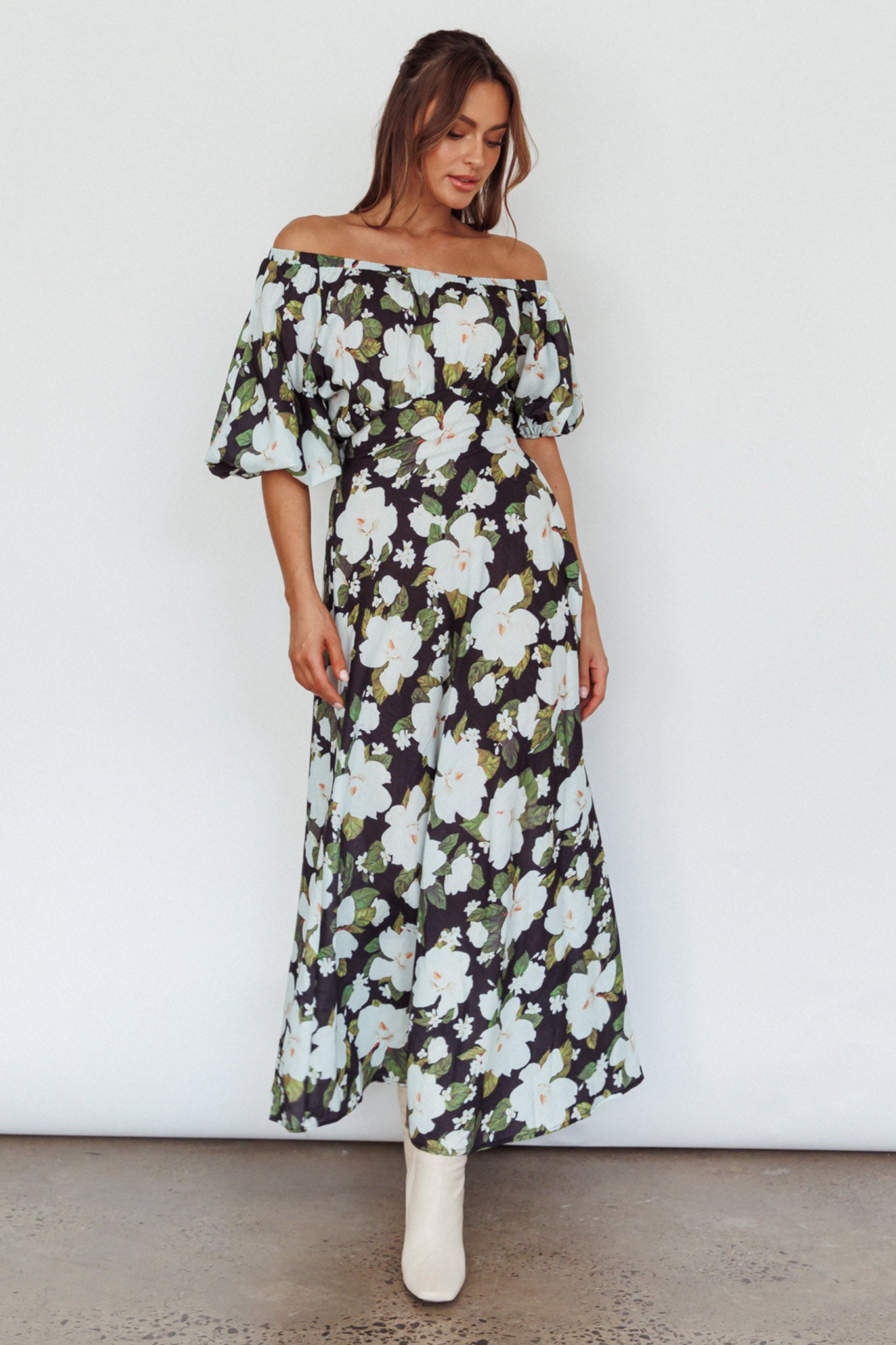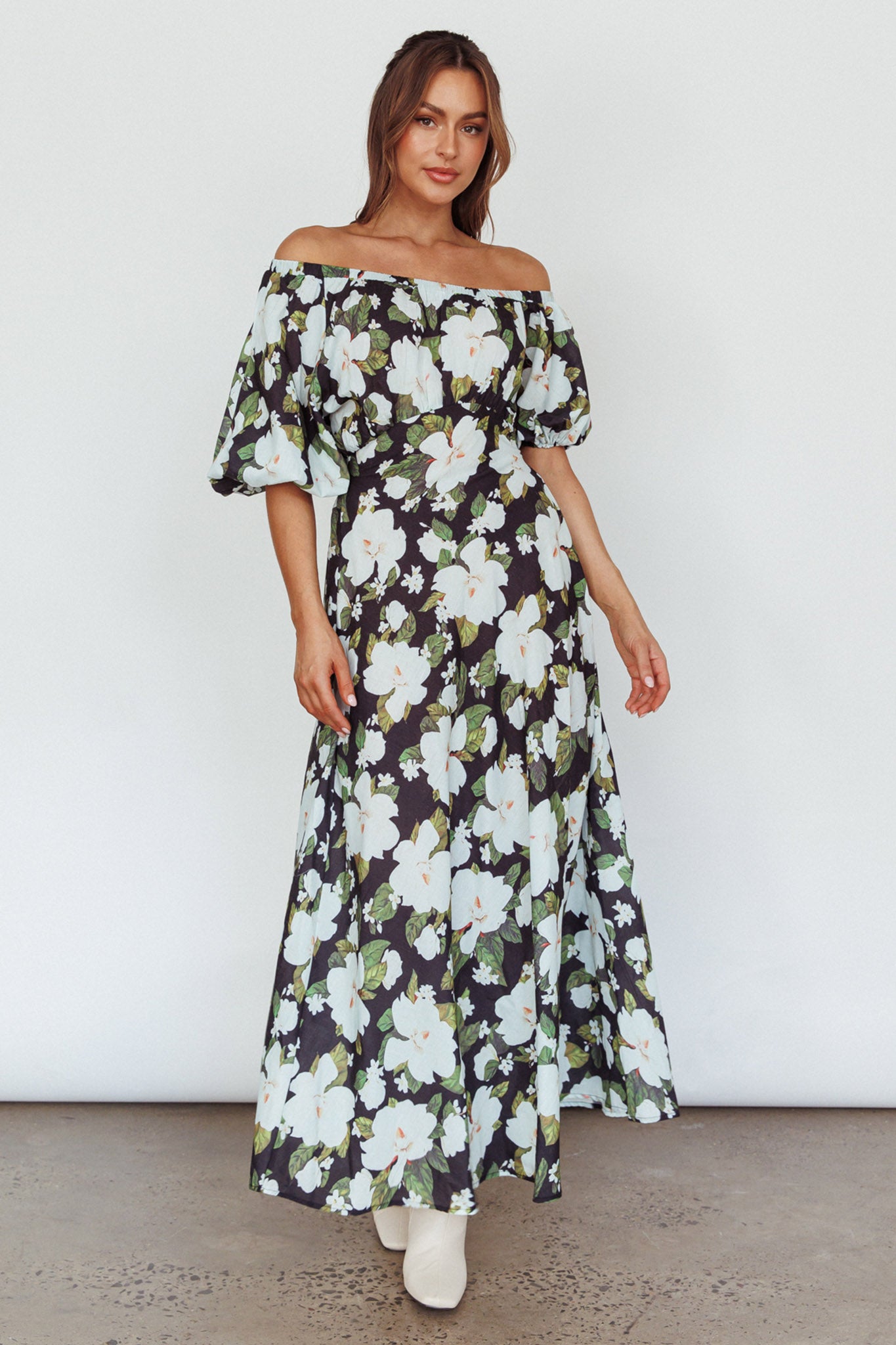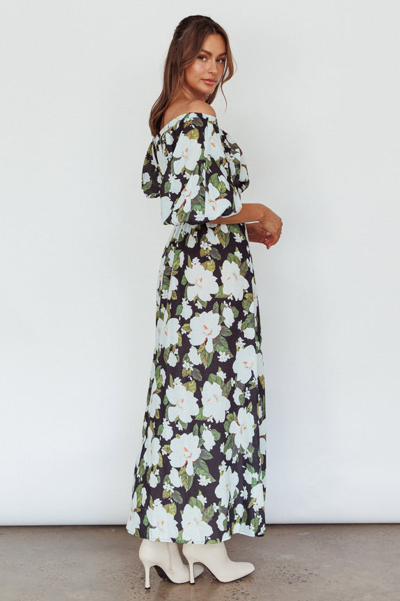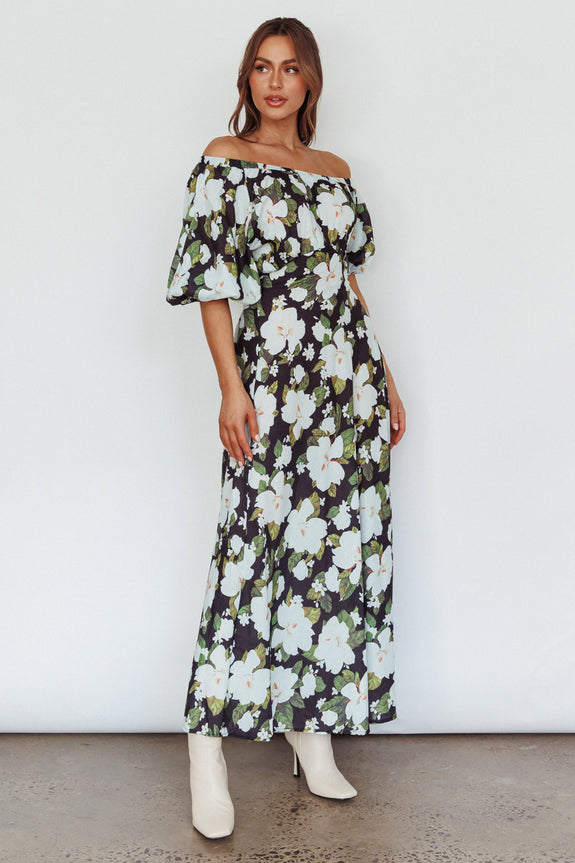 Momentum Off Shoulder Maxi Dress Floral Black