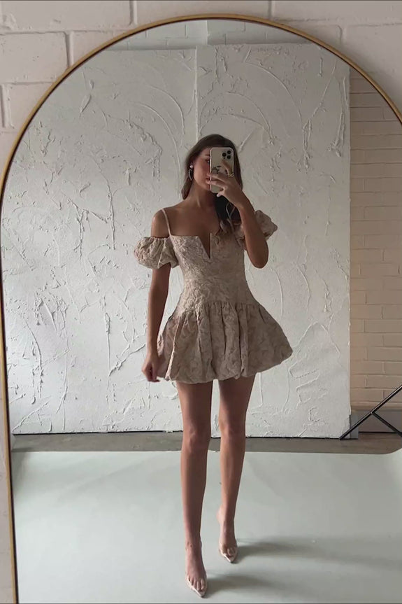 Make an entrance in our adorable Mon Bebe mini dress. Featuring off-shoulder puff sleeves and a drop waist style, we're in love! Perfect for a wedding or birthday celebration. Team it with diamante heels and a satin clutch for a look that will turn heads.