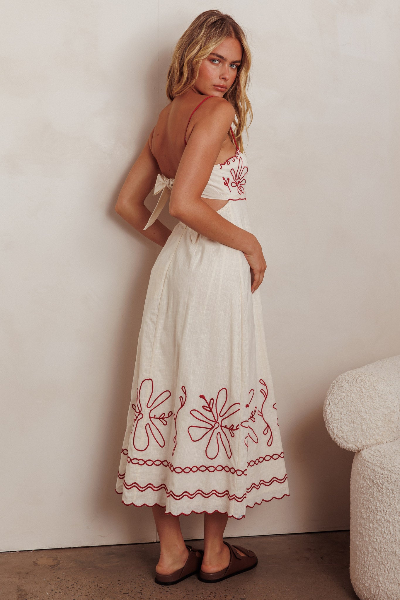 Mondo Scalloped Hem Maxi Dress Embroidered Red