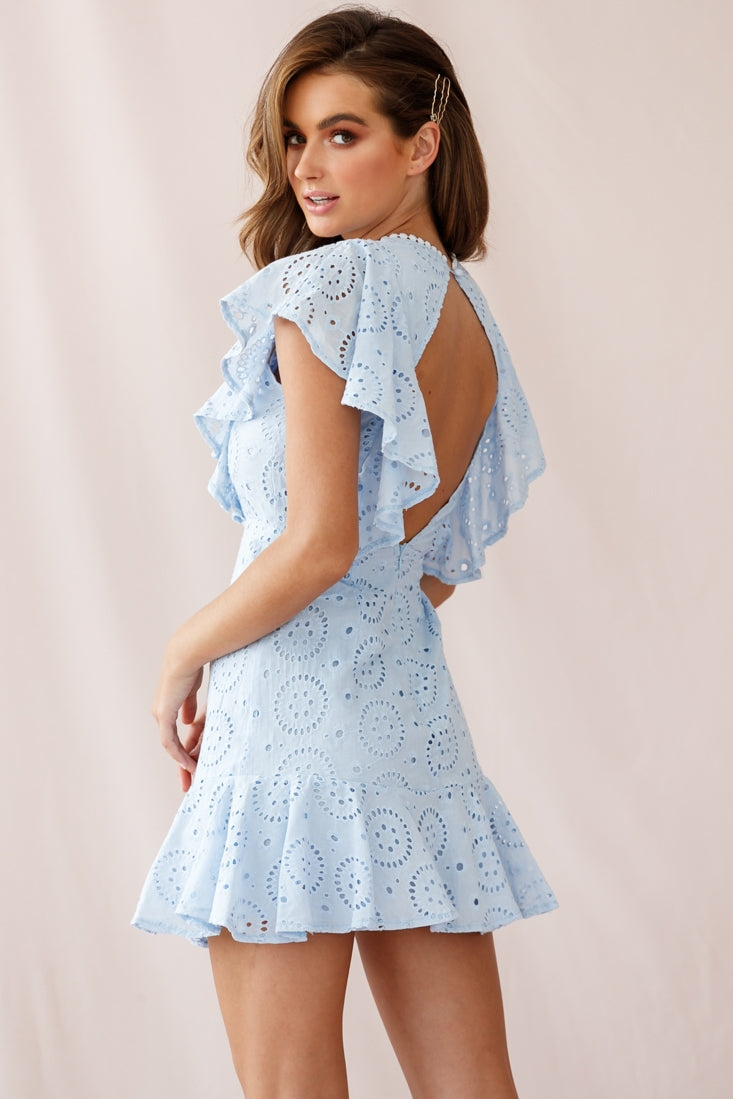 Monica Broderie Anglaise Ruffle Dress Steel Blue