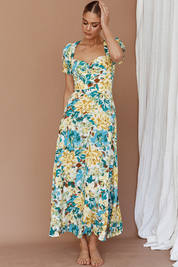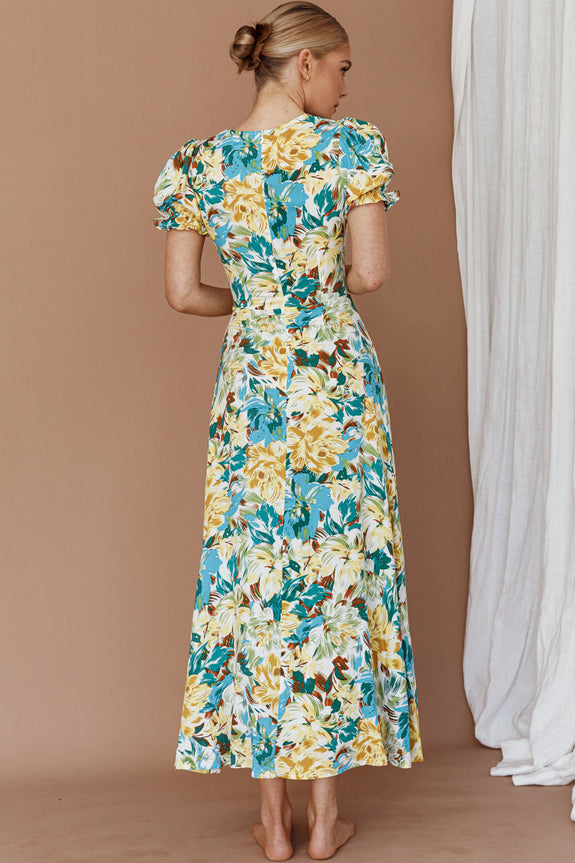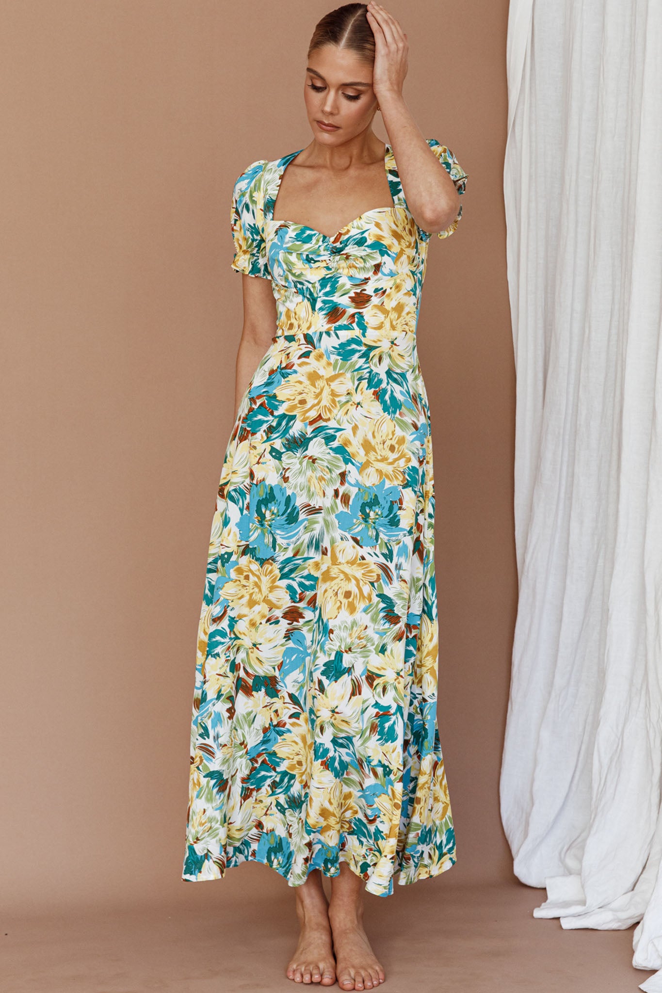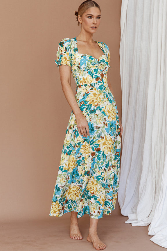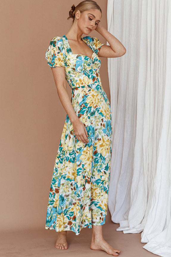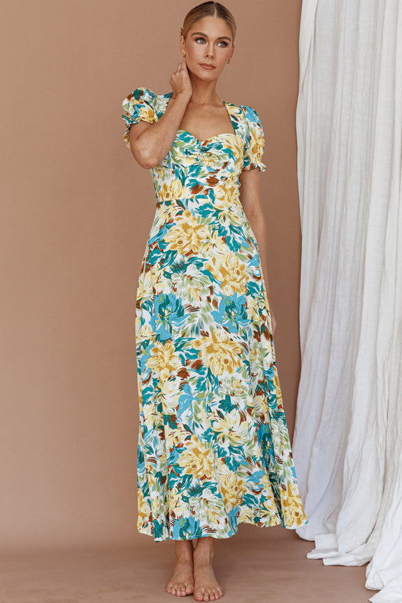 Make an entrance in our pretty Montelbello maxi dress. Featuring feminine puff sleeves and a gorgeous floral print. Perfect for weekend brunch with your besties. Team it with tan mules and a tote for a look that'll have you flooded with compliments.