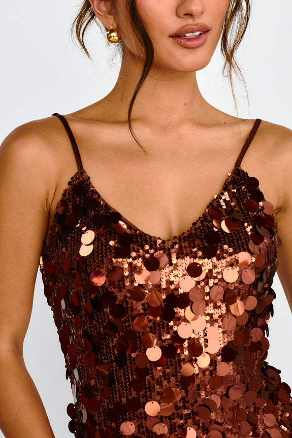 - Sequin embellishment throughout