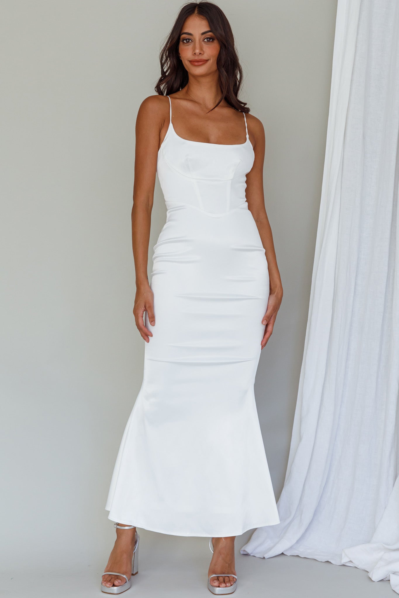 Steal the show in our gorgeous Moon Rising maxi dress. We are in love with its structured bodice and soft, satin fabric. Perfect for the modern bride or prom! Team it with clear heels and a clutch for a stunning look that will turn heads.
