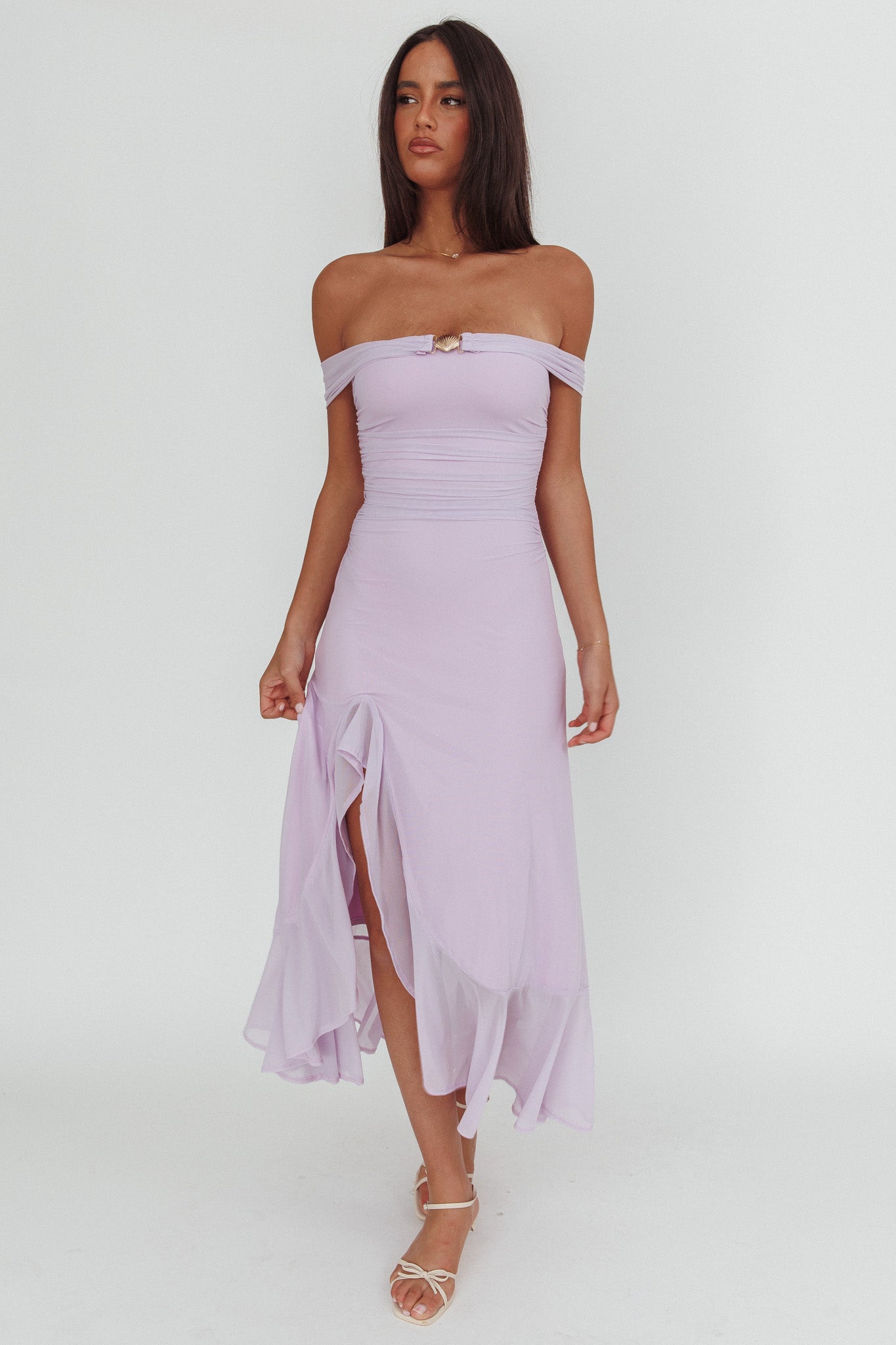 Moonlit Magic Off-Shoulder Split Maxi Dress Lilac