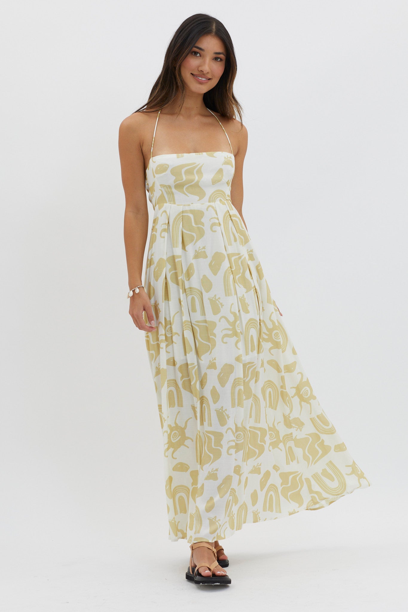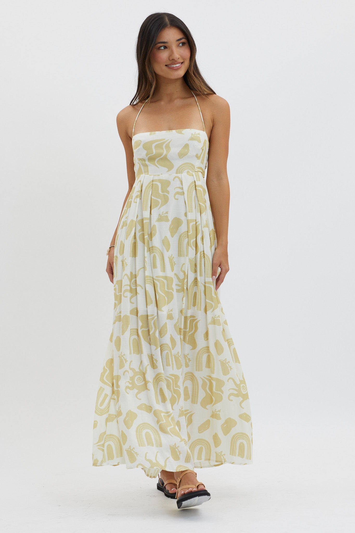 Twirl through your weekend in our chic Moreton maxi dress. Featuring a halterneck style and tie in the back, it's perfect for sunset cocktails with your besties or a BBQ pool party. Team it with mules and a tote for a look we are loving.