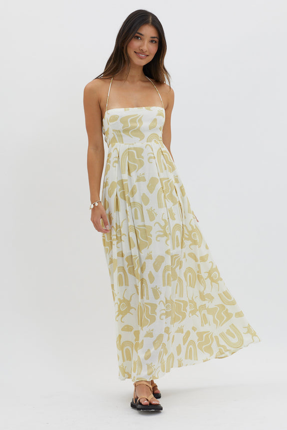 Moreton Halterneck Tied Back Dress Yellow