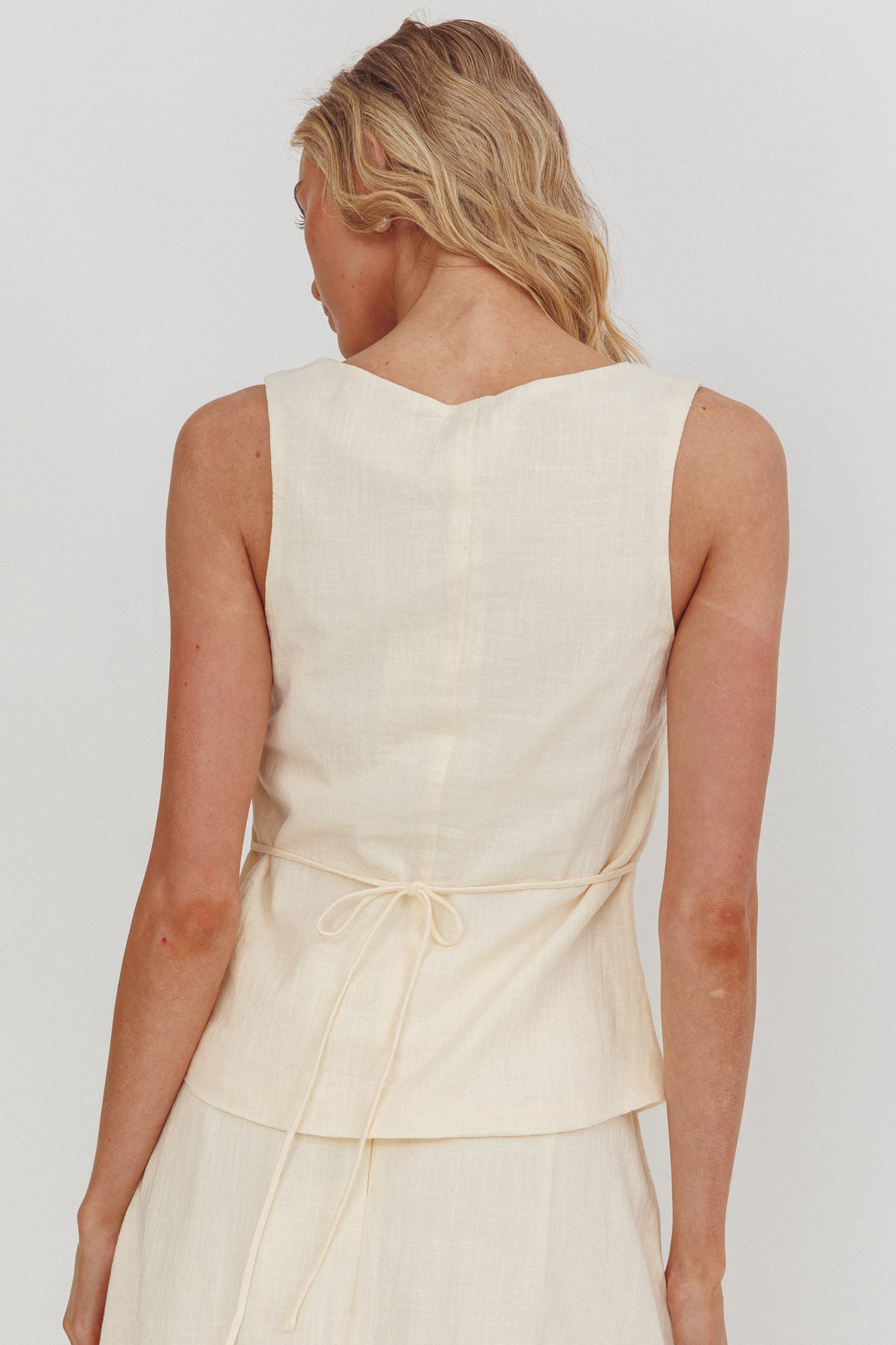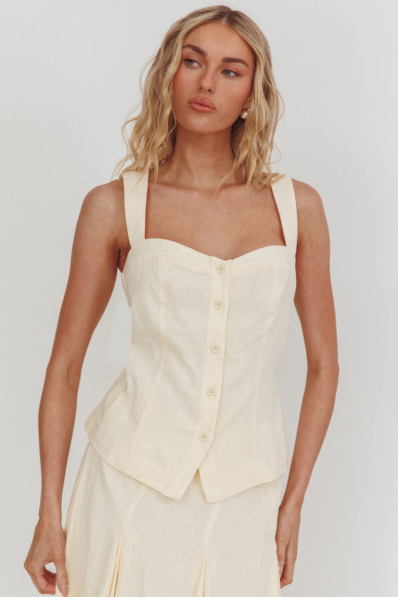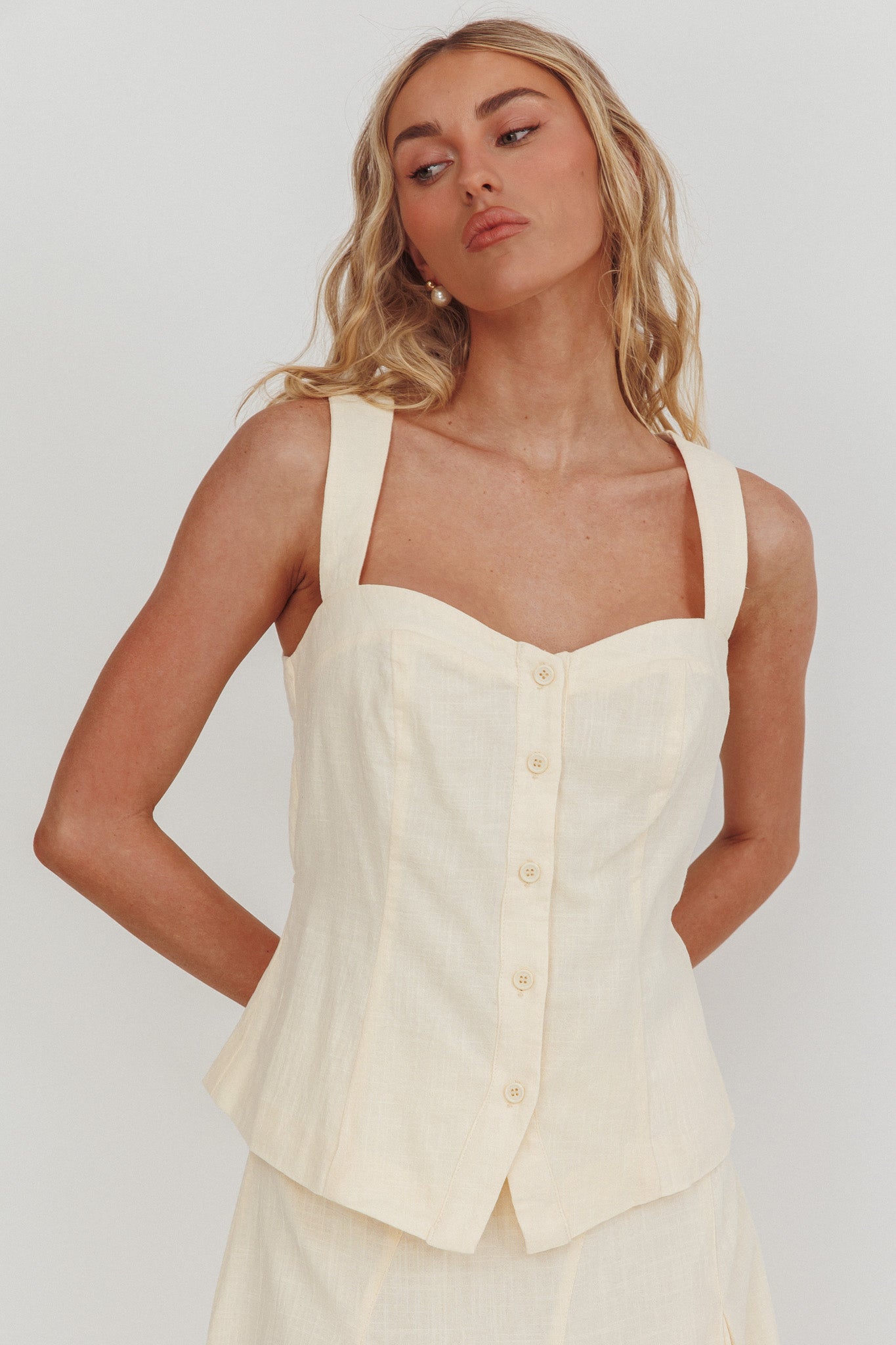 Twirl the day away in our gorgeous Morning Lights top. It features a button-up design and string tie in the back. It's perfect for a brunch date with your besties teamed with its matching skirt, kitten heels and a tote for a look we are loving.