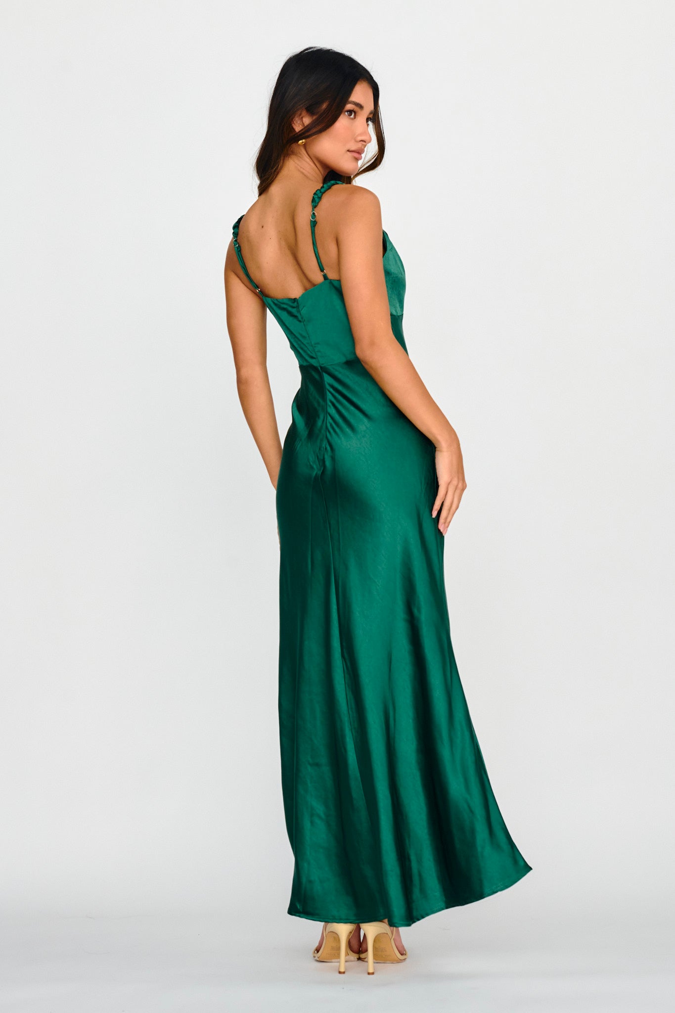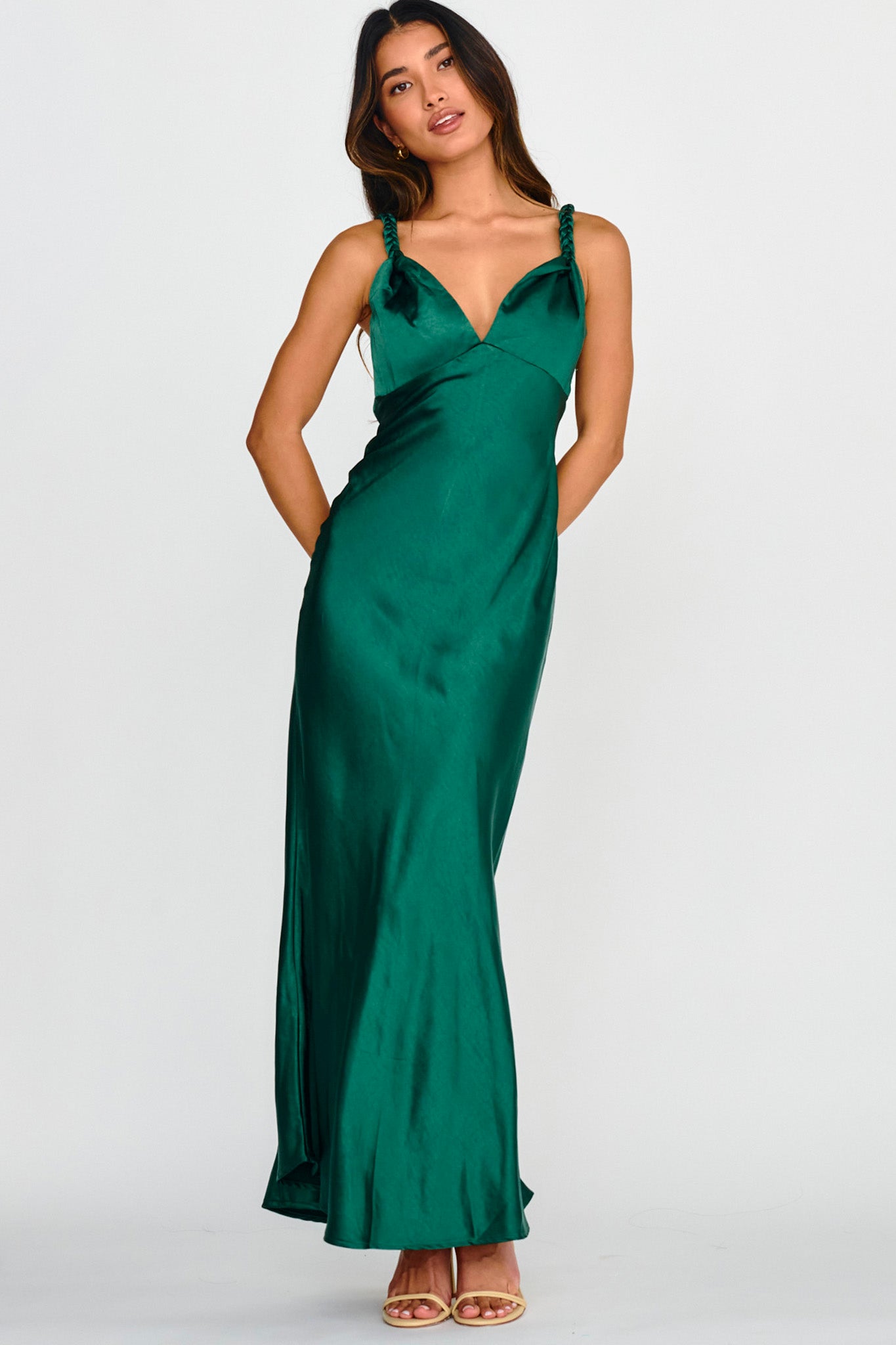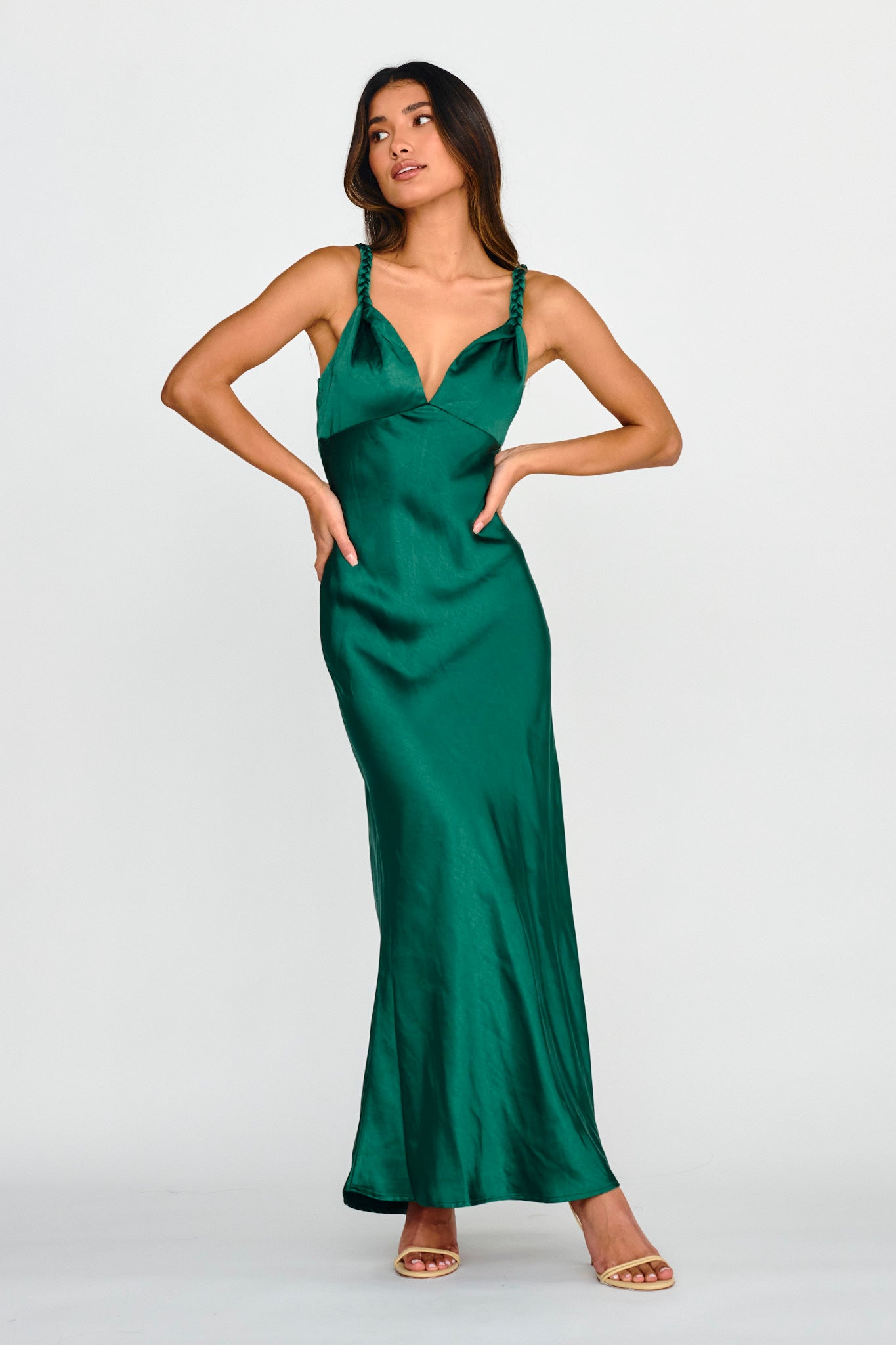 We've fallen head over heels for our dreamy Muraya dress. Featuring a soft, satin fabric and braided straps, you'll be flooded with compliments! Perfect for a wedding or holiday party teamed with strappy heels and a clutch for an unforgettable look.