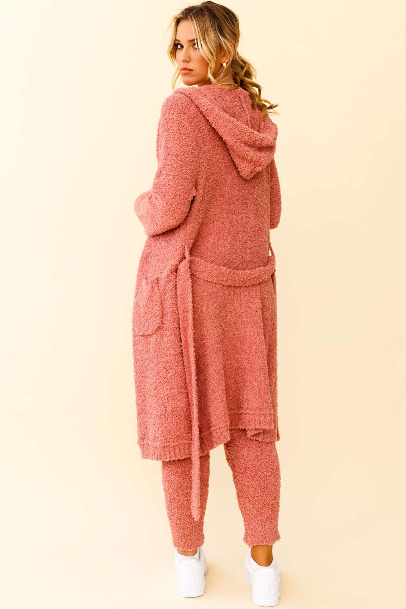 My Girl Fuzzy Knit Longline Pocket Cardigan Rose