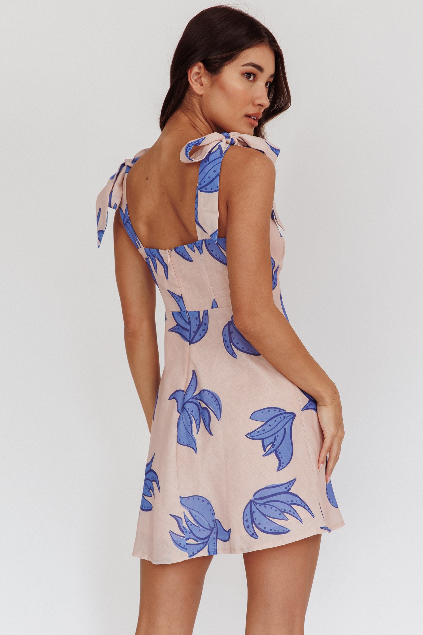 Make an entrance in our super cute Mykonos Morning mini dress. It features a playful print and tied shoulders and is perfect for Sunday brunch with your besties! Team it with tan mules and a tote for a look that will turn heads.