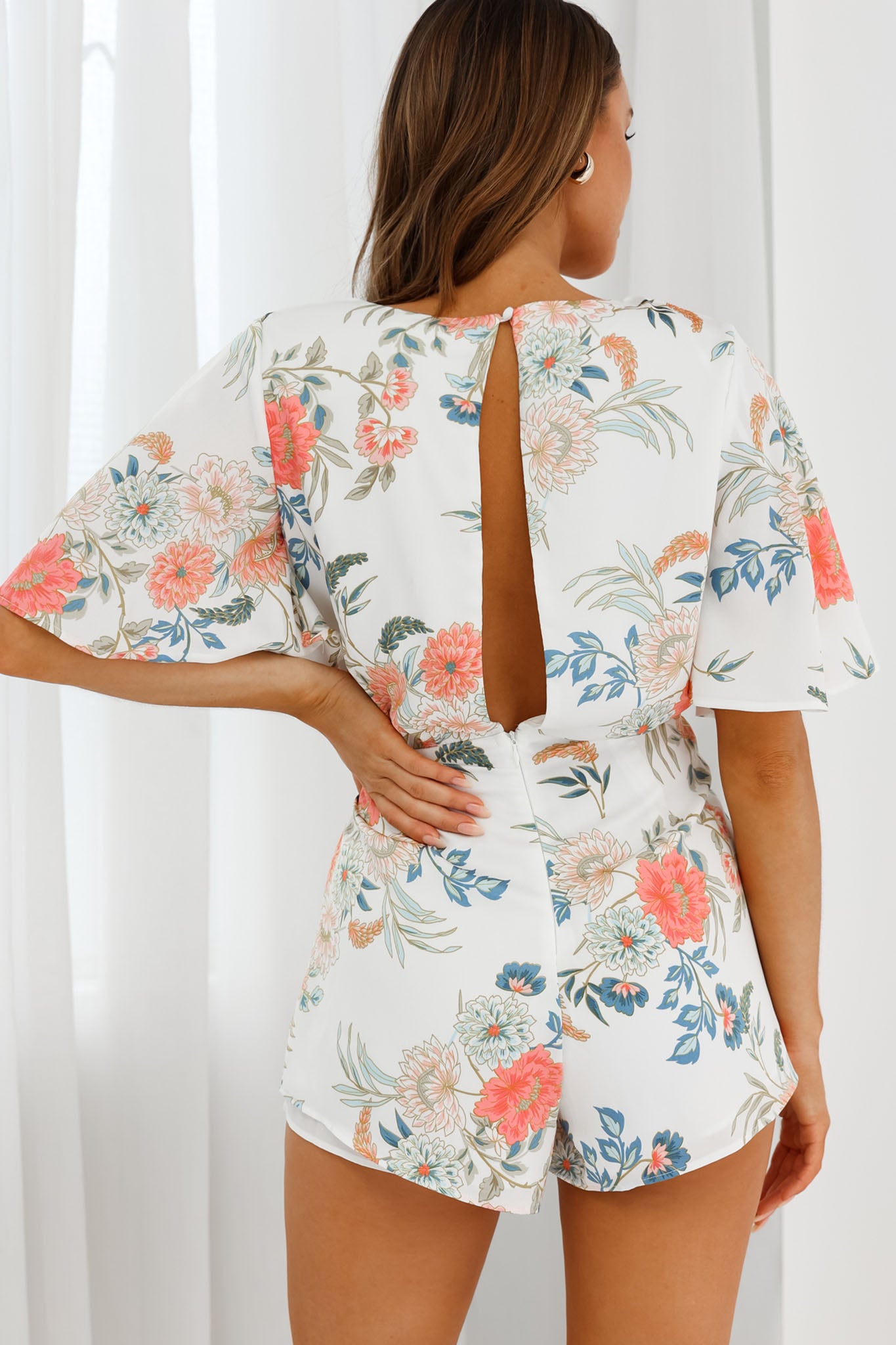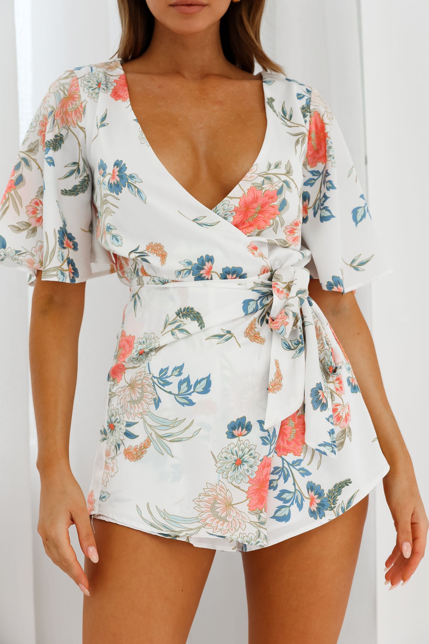 Turn heads in our pretty Nadi romper. Perfect as the weather starts to heat up. Featuring a flattering wrap style, tying at the side, it looks like shorts in the back but gives the illusion of a skirt from the front. Team it with nude heels and statement earrings for a girls' night out!