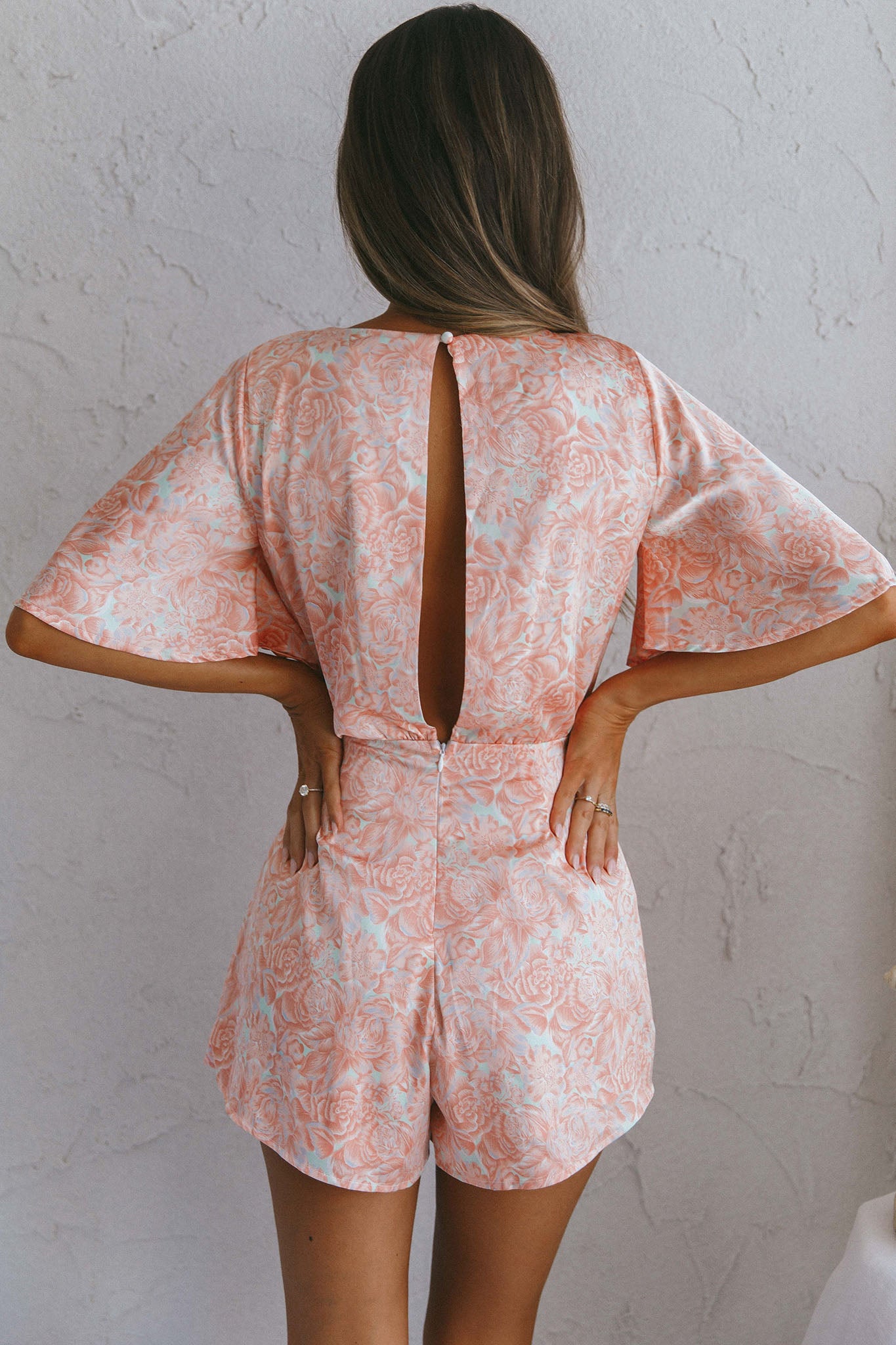 Nadi V-Neckline Wrap Romper Flower Paint Print Pink