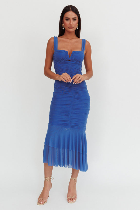 Make an entrance in our stunning Nadia maxi dress. Featuring a fishtail style and ruching throughout, we're in love! Perfect for a wedding or prom! Team it with a clutch and nude heels for a look that will turn heads.