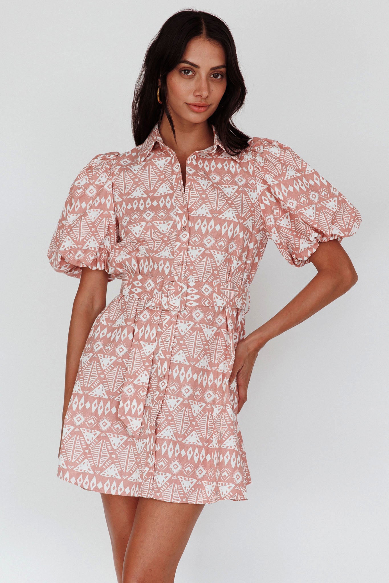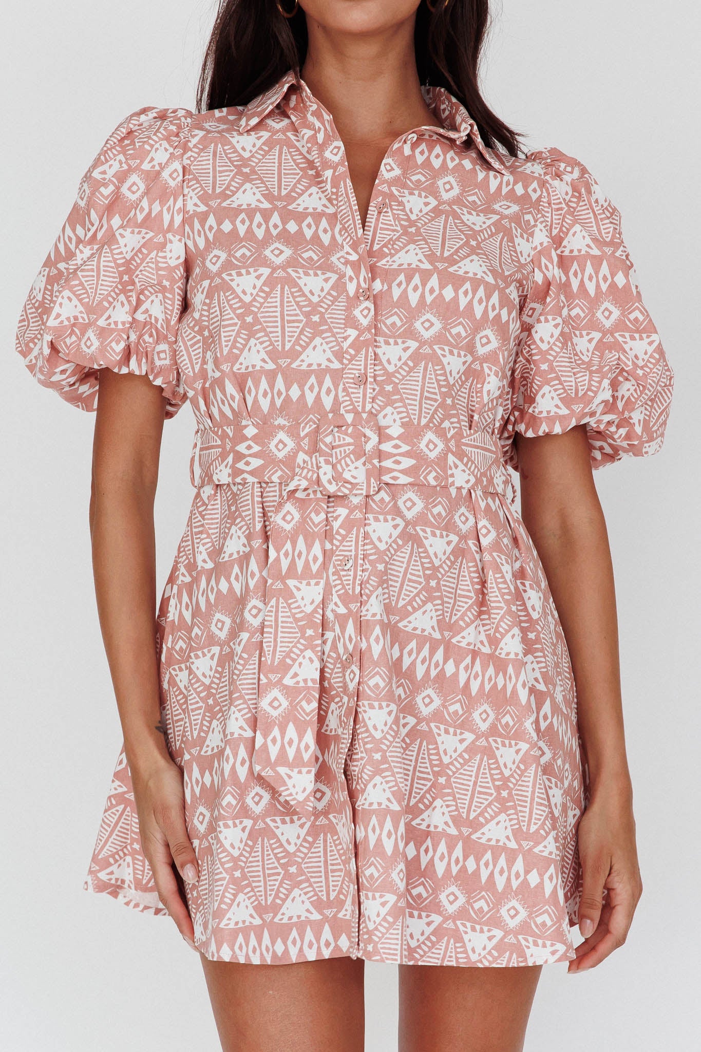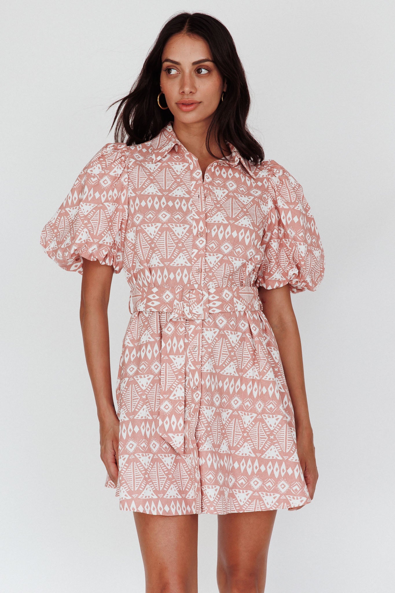 Nanette Puff Sleeve Belted Mini Dress Print Rose