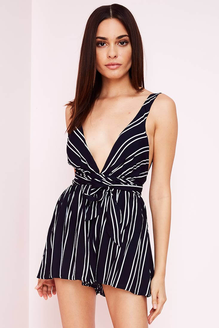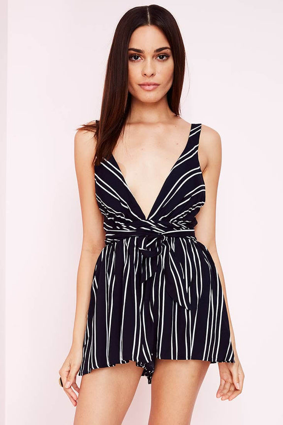 Look like a standout this season with this gorgeous romper. Features stripe print, team with heels and minimal jewelry for a must have party look.