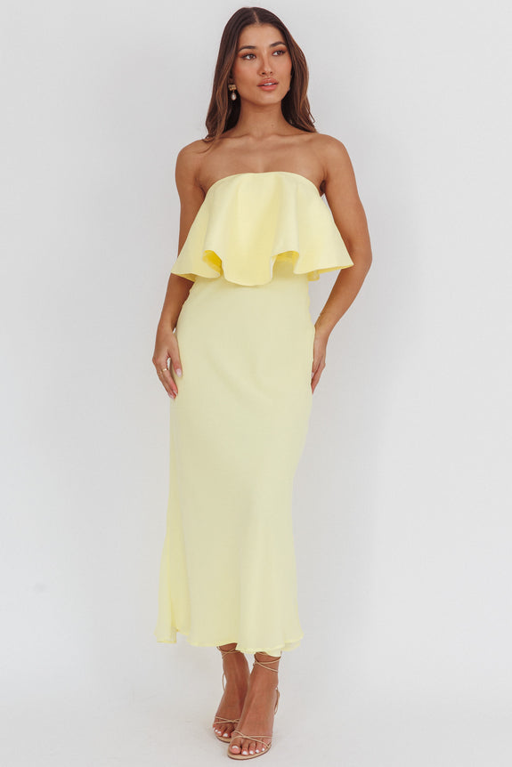 Nerina Strapless Ruffle Neckline Maxi Dress Panna Cotta