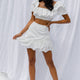 You're a real cutie in our New Moon skirt. We are loving its scalloped, ruffle trim and eyelet embroidery throughout. Perfect for a first date or lunches with your girls. Team it with its matching crop top and nude mules for a look that'll steal the show.