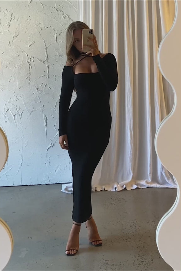 Jaws will drop when you strut by in our chic News Flash midi dress. Featuring a stretchy fabric and unique string detail in the neckline. Perfect for a date night with your lover! Team it with strappy heels and a clutch for an unforgettable look.