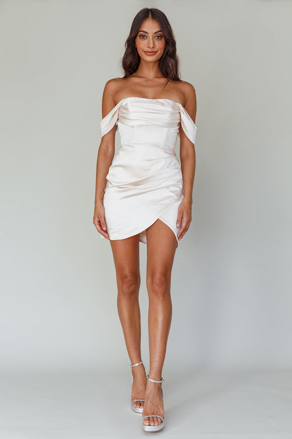 Night To Remember Off-Shoulder Satin Dress Champagne