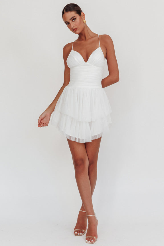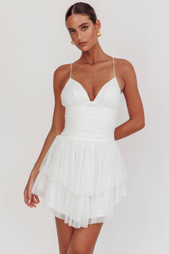 Steal the spotlight in our gorgeous Nightingale mini dress. We are obsessed with its romantic, ruched mesh throughout and tie-up back. Perfect for a special birthday celebration teamed with strappy, black heels and a clutch.