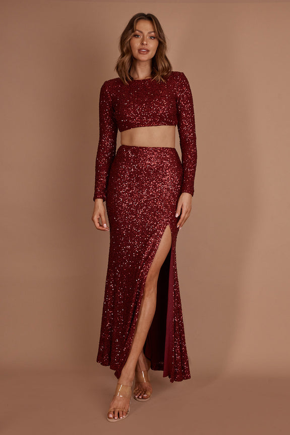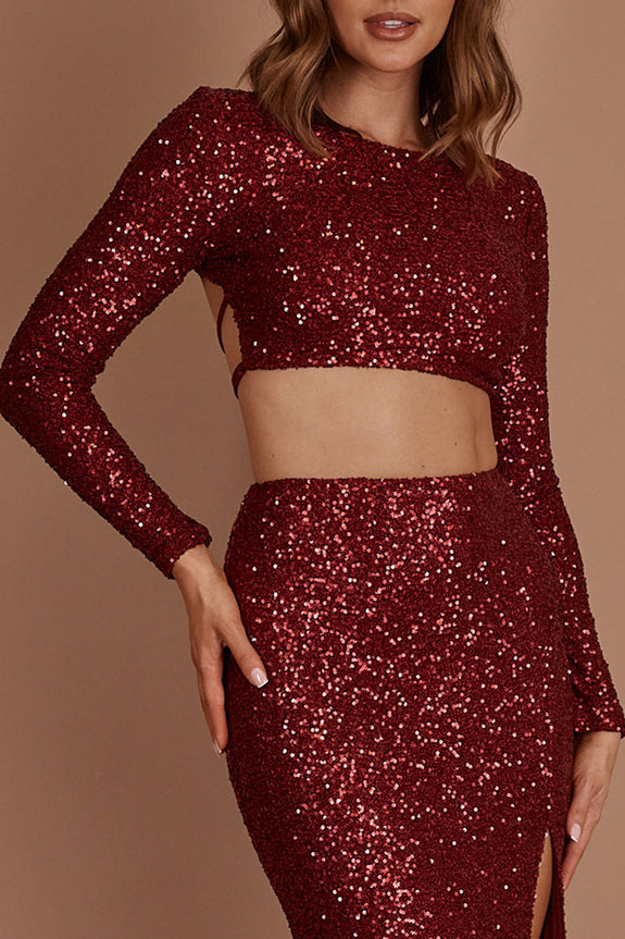 - Burgundy sequin crop top