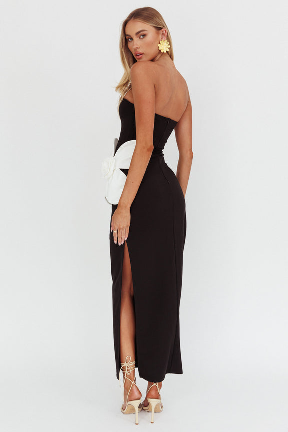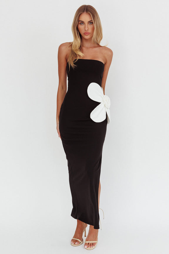No Competition Oversized Flower Maxi Dress Black