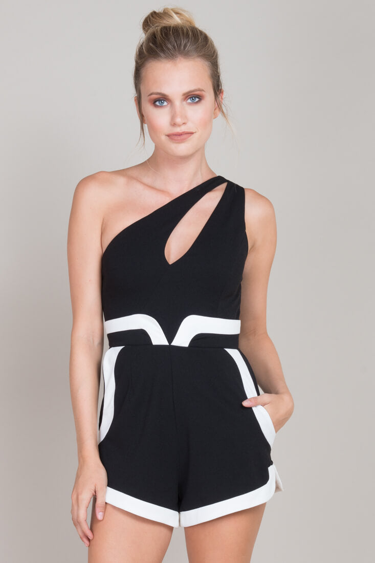 Stand out in this one of a kind asymmetrical romper in black. This is one classy romper!