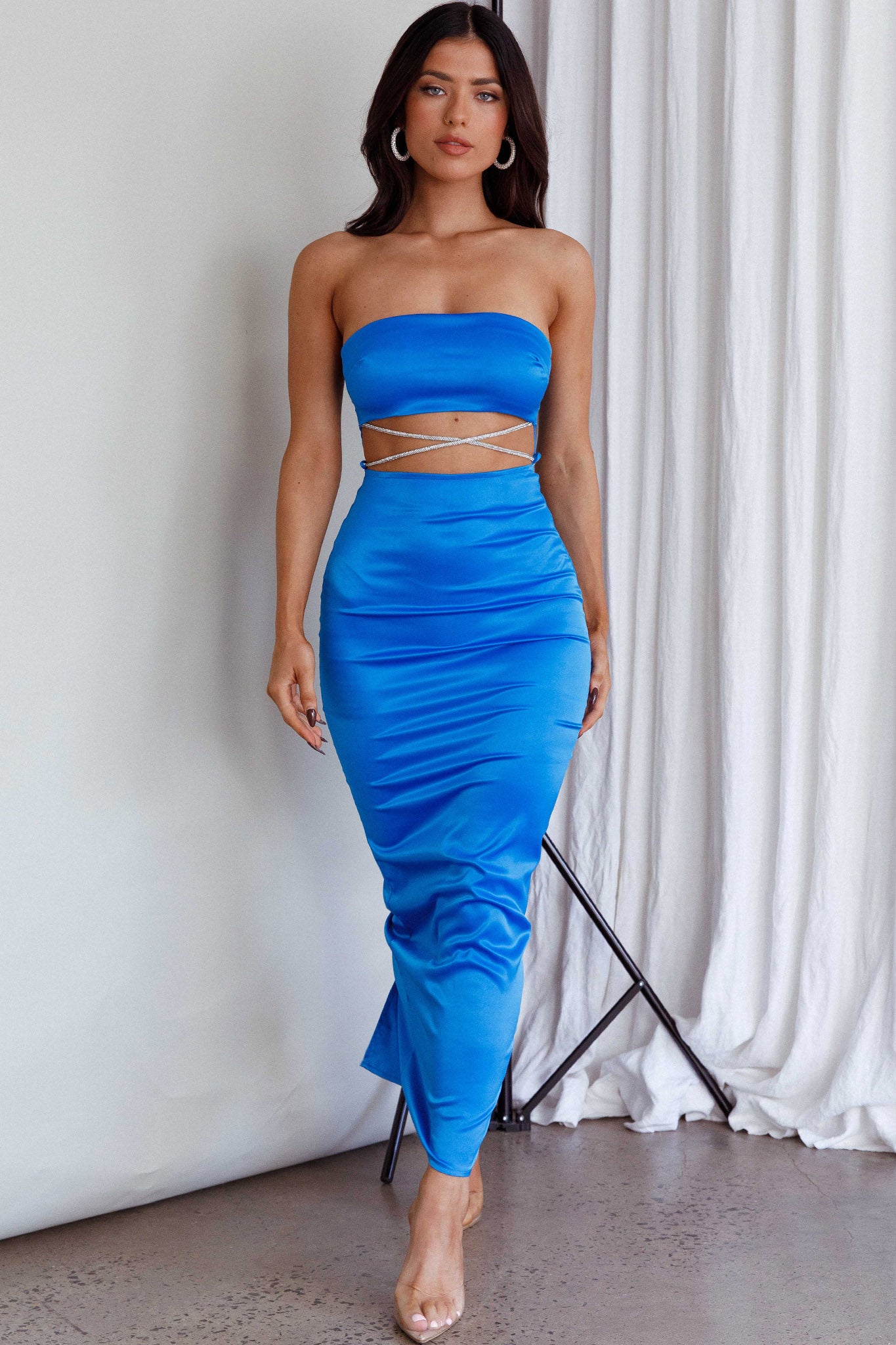 Make an entrance in our hot Nohemi maxi dress. Featuring a cut-out waist with diamante strap detail that ties in the back, we're obsessed! Perfect for a girls' night out or birthday celebration teamed with a clutch and diamante mules!