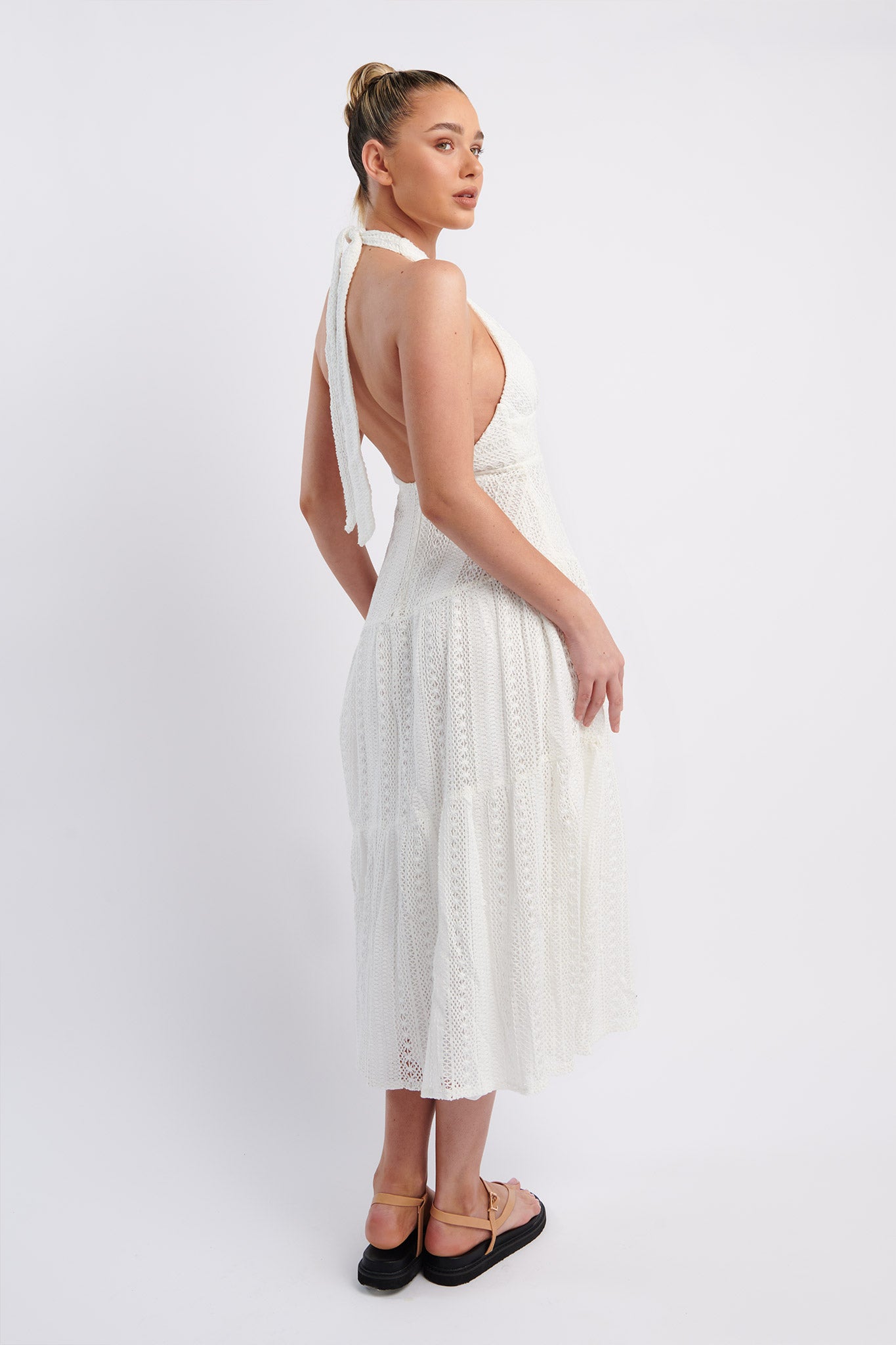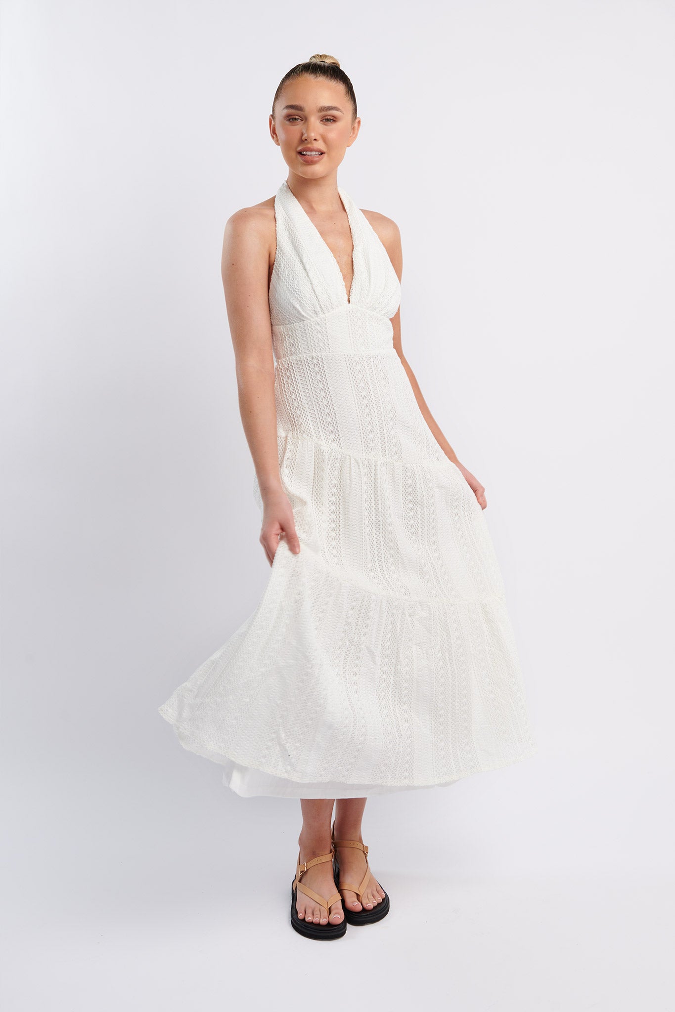 Nolita Halterneck Lace Overlay Maxi Dress White