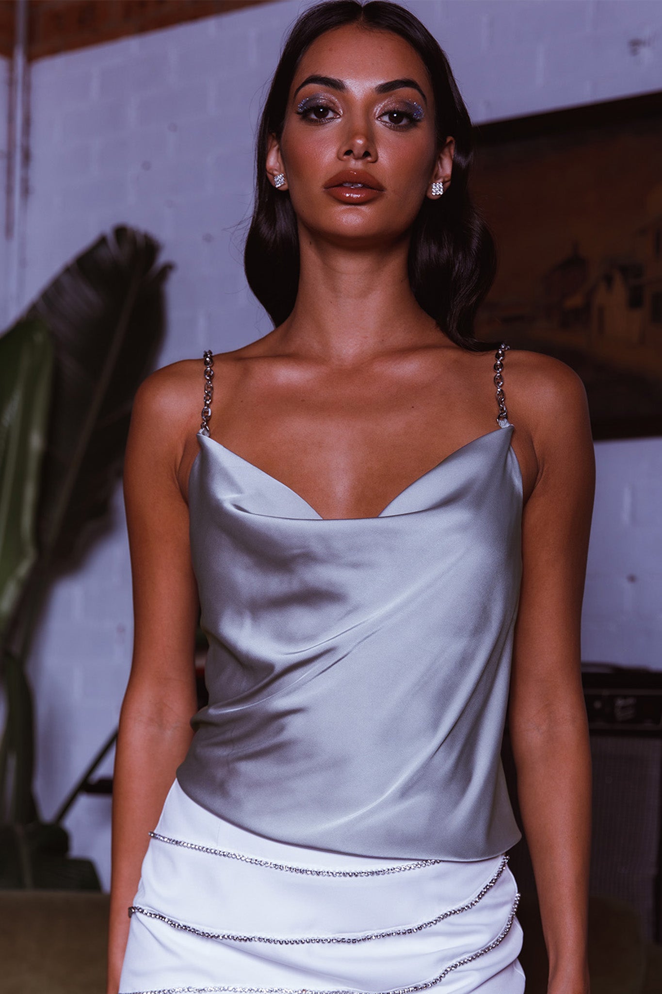 Make a statement in our chic Nouveau top. Featuring chain straps and a cowl neck, it's just what you need to take your 'fit to the next level. Team it with a mini skirt or jeans and mules for a look we are loving.