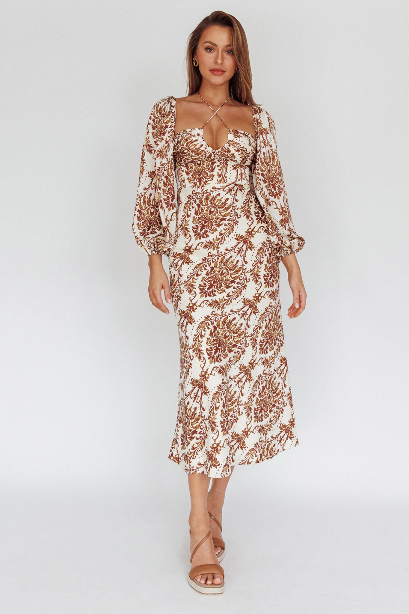 Make an entrance in our beautiful Nyree maxi dress. Featuring long sleeves and a tie in the bust, it's perfect for weekend lunch dates with your girls. Team it with tan mules and a tote for a look that will turn heads.