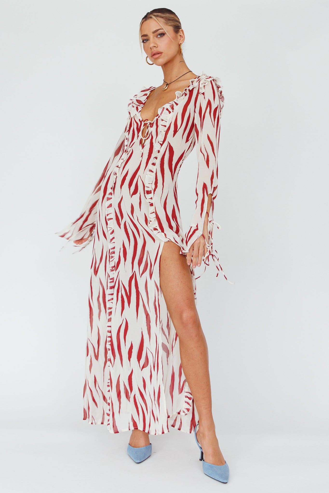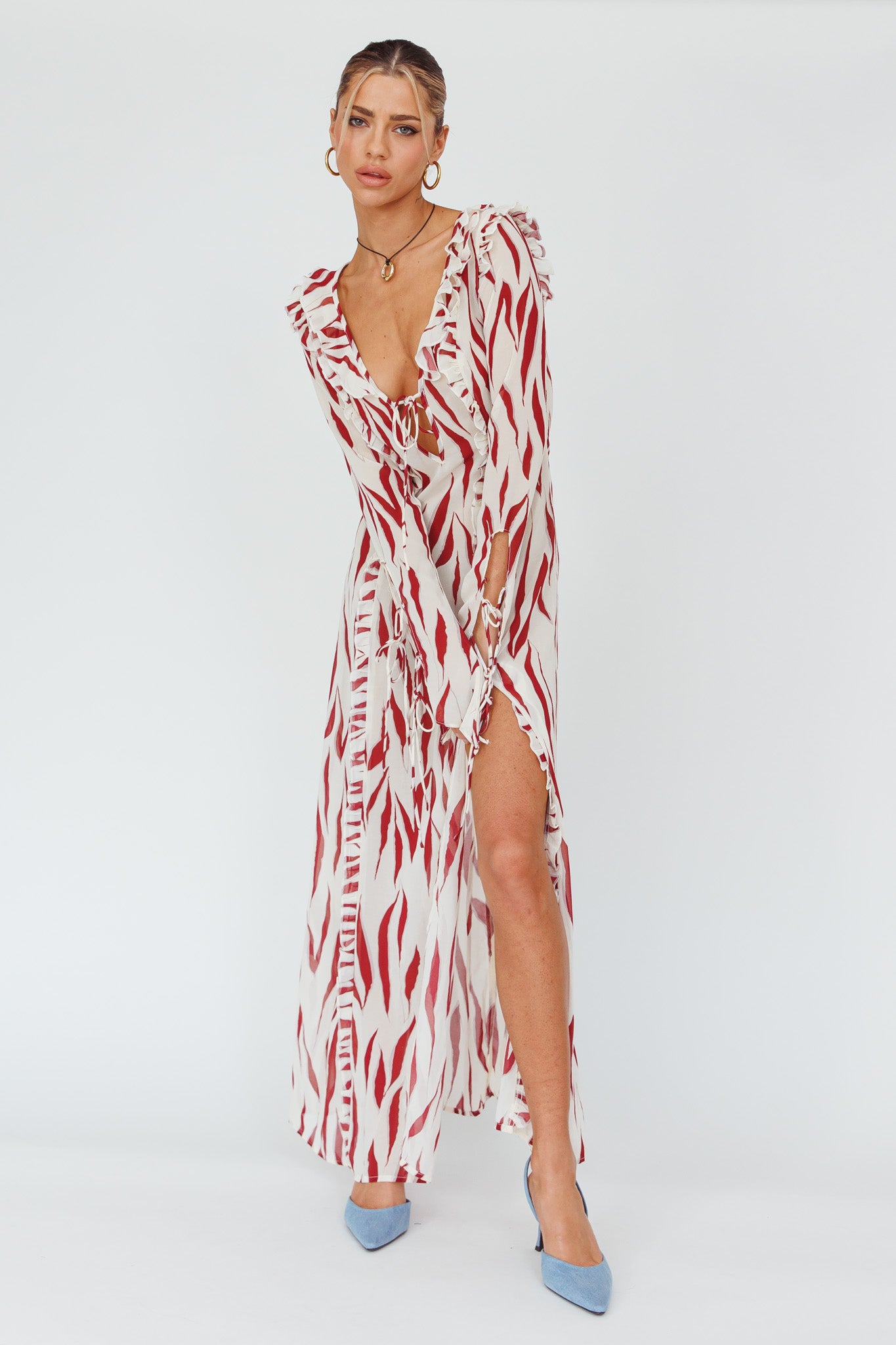 Steal the show in our gorgeous Oasis Moon maxi dress. Featuring string tie details and the sweetest frill trim. Perfect for Friday nights with your girls at your fave rooftop spot. Team it with kitten heels and a saddle bag for a chic look that will turn heads.