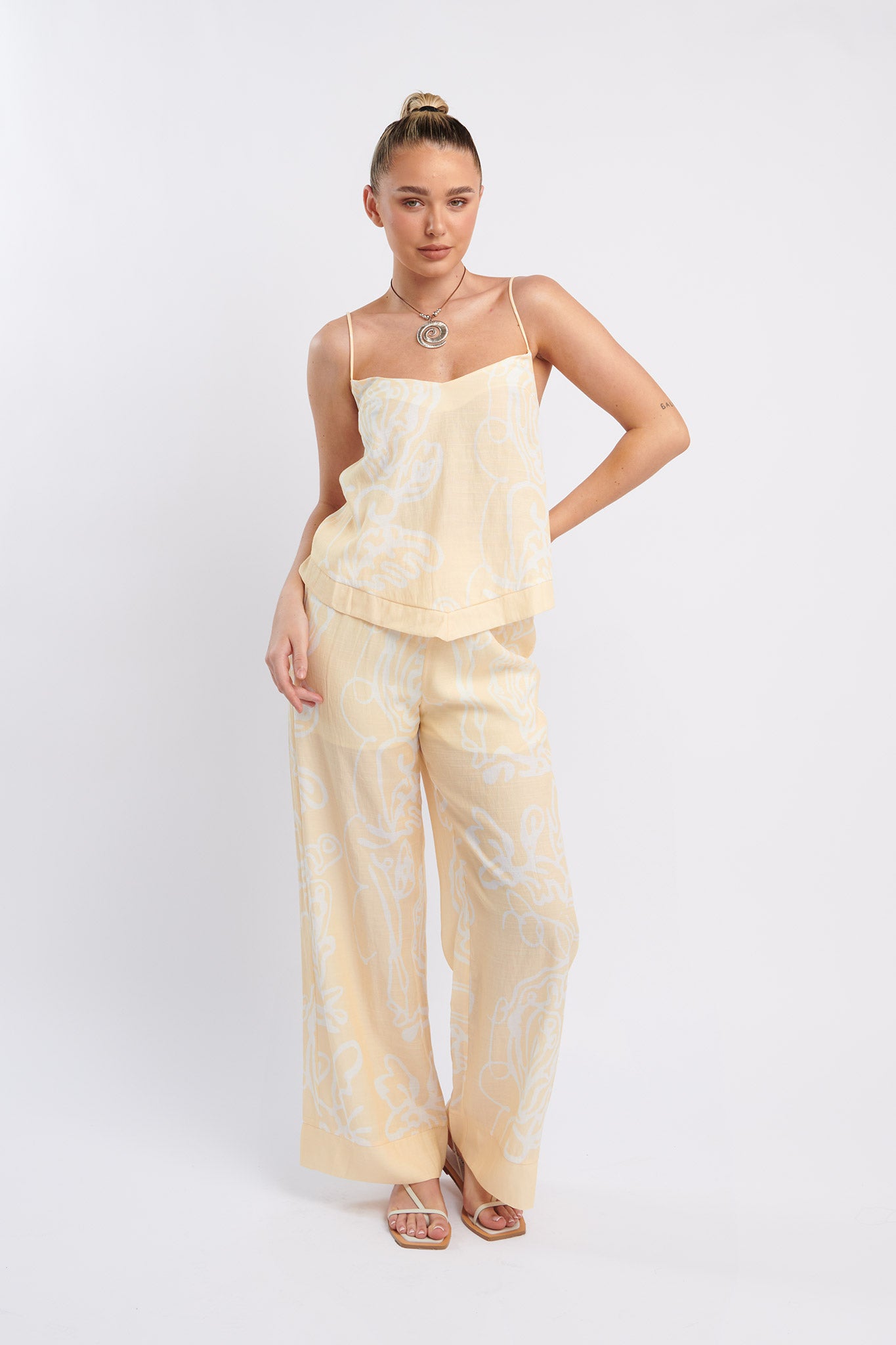 Float through your weekend in our cute Oceania pants. We are in love with their light, breezy fabric -perfect for slow Saturdays strolling the vintage markets. Team them with their matching top and slides for an effortless, chic look.